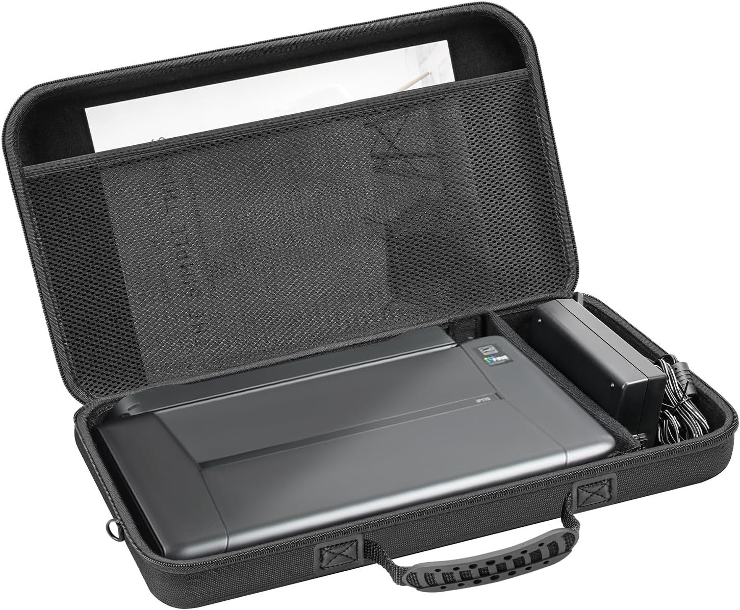 【Comprehensive Storage & Organization】The case includes space for the printer adapter, while the mesh pocket on the lid provides ample storage for ink cartridges, cables, manuals, and other essential accessories. Keep all your printer essentials organized and easily accessible.