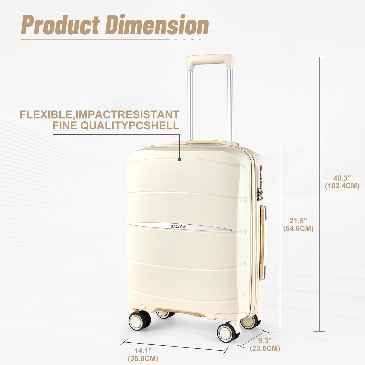 【Product Dimensions】 KACUYO carry-on luggage fits in the overhead compartments of most airlines. Suitcase carry-on size : L15.74″ x W9.15″ x H22.44″ , WEIGHT: 7.71 lbs. 20 inch travel suitcase, making it an ideal carry-on for short business trips.