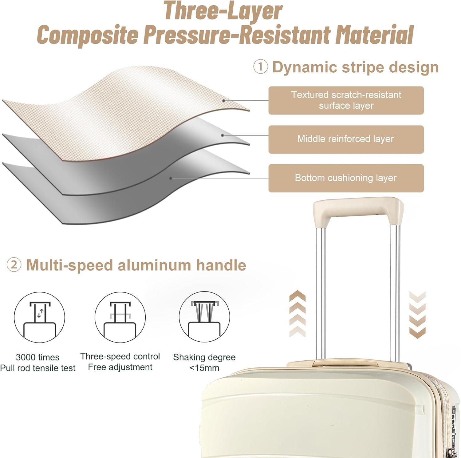 【Perfect Design】 The travel suitcase with wheels dynamic striped design and color scheme features several patented technologies and a dual-wheel design for a smoother, quieter and more comfortable ride. Rubberized carrying handles on top and sides for easy lifting and carrying.
