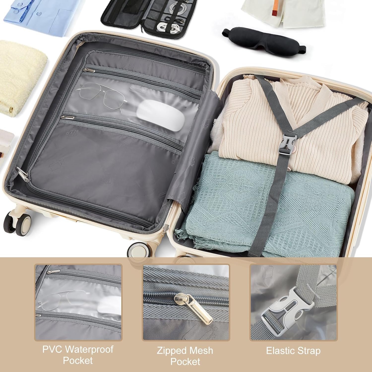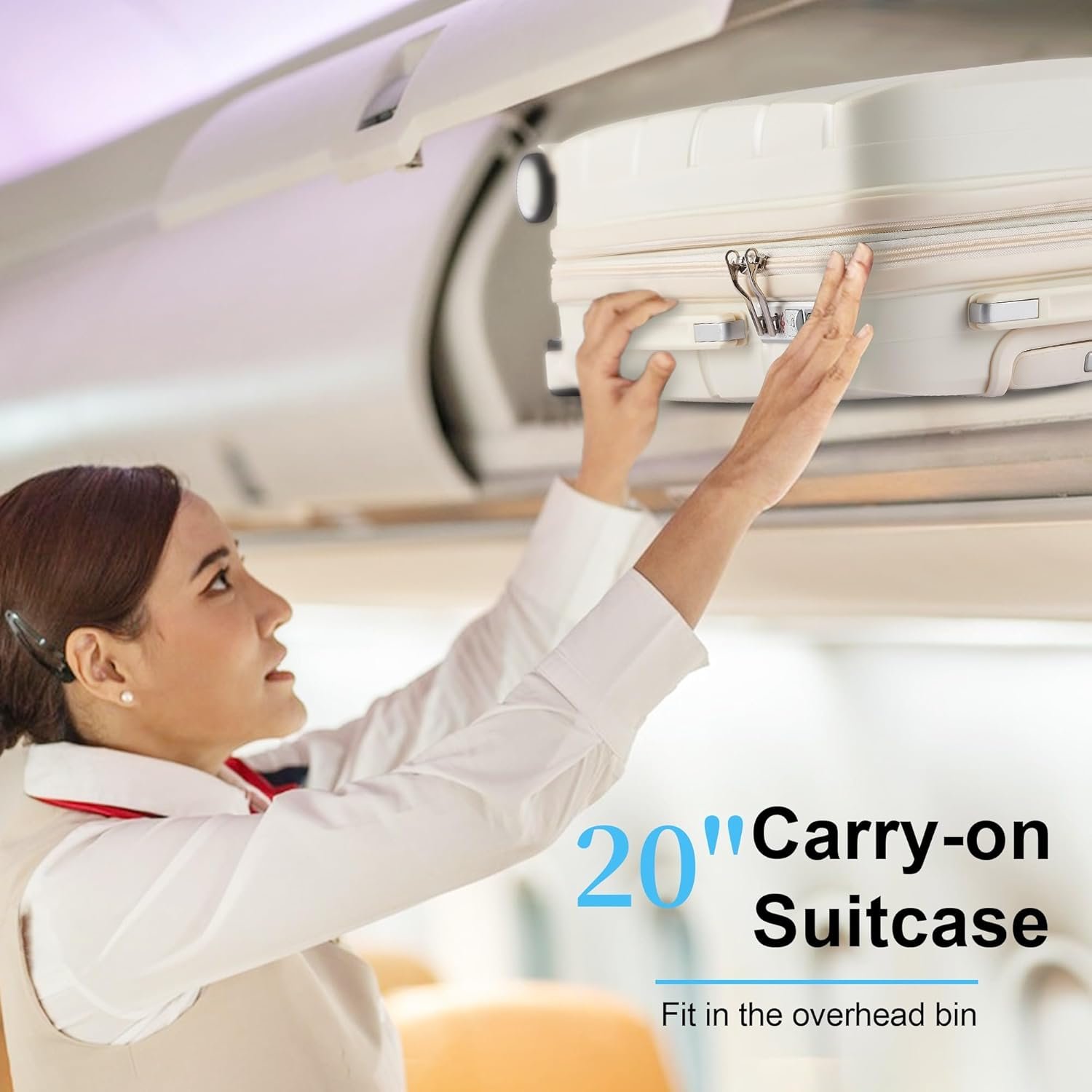 This set is ideal for personal and business travel which is in line with airline standard. It will transport your travel essentials effortlessly and stylishly. This white 20-inch luggage combines a minimalist, stylish design with exceptional functionality, making it perfect for short trips and business travel.