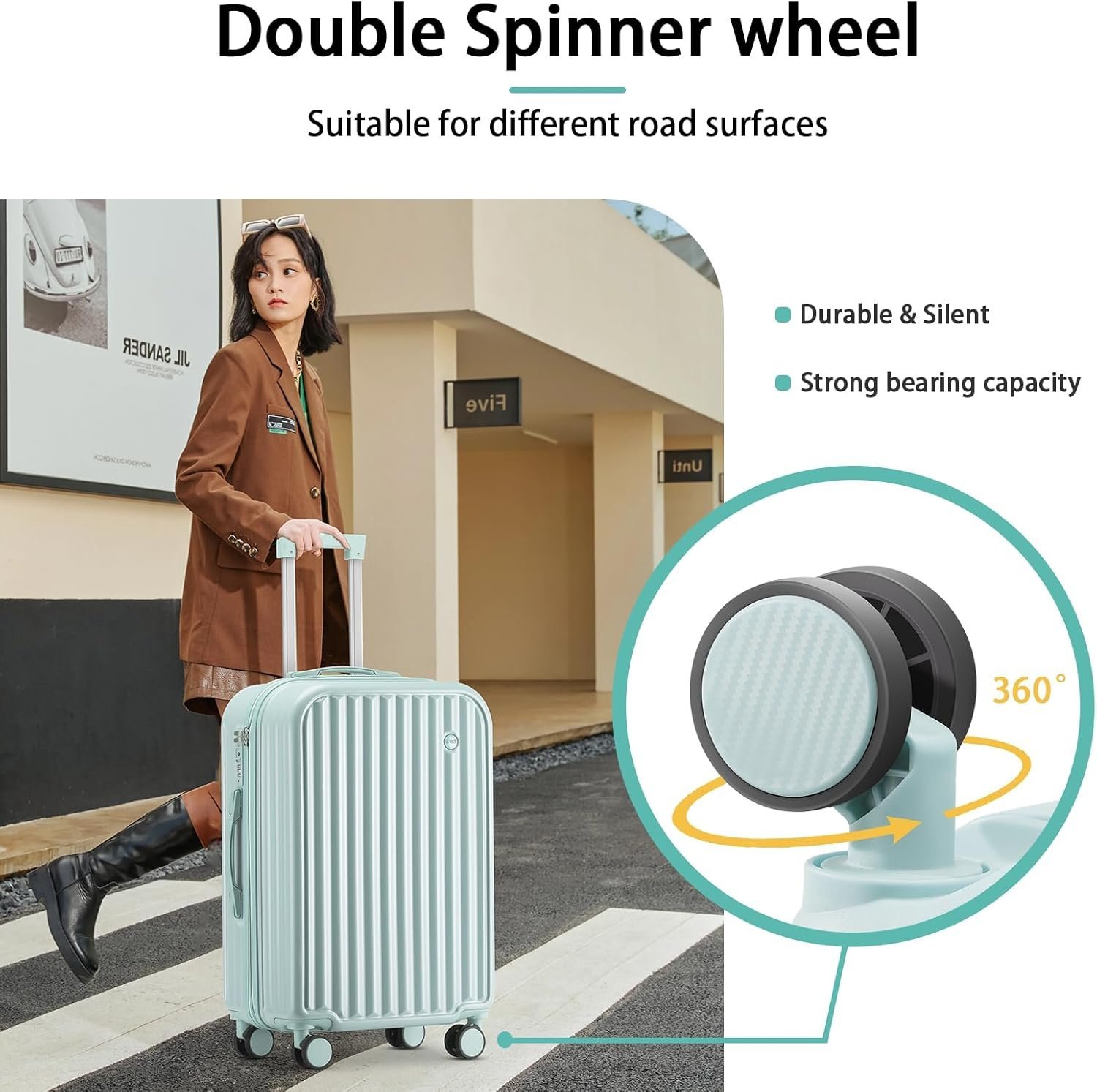 High Quality Accessories: 360° spinner wheels, which are composed of precision shaft center and thickened wheel skin, are very wear-resistant, quieter and have strong bearing capacity. They are applicable to different roads such as cobblestone road and carpet road. Smooth and durable reinforced explosion-proof zipper reverse coil prevents burst zipper. TSA-approved combination lock is safe and convenient. The ergonomic telescopic handle is adjustable in multiple layers.