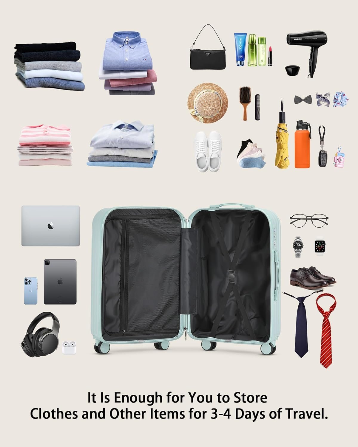 GREAT BALANCE OF SIZE AND CAPACITY: TIYFIY carry on luggage fits in most airline overhead compartments. Including wheels and handles, 20 inch carry on luggage airline approved , can fit in the overhead bin