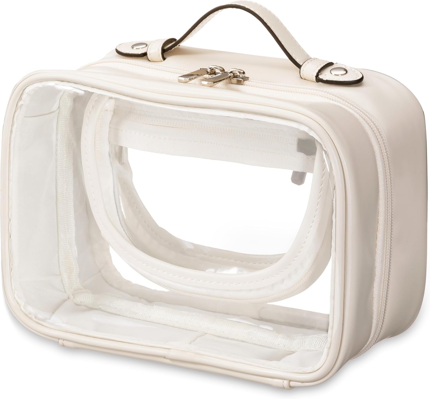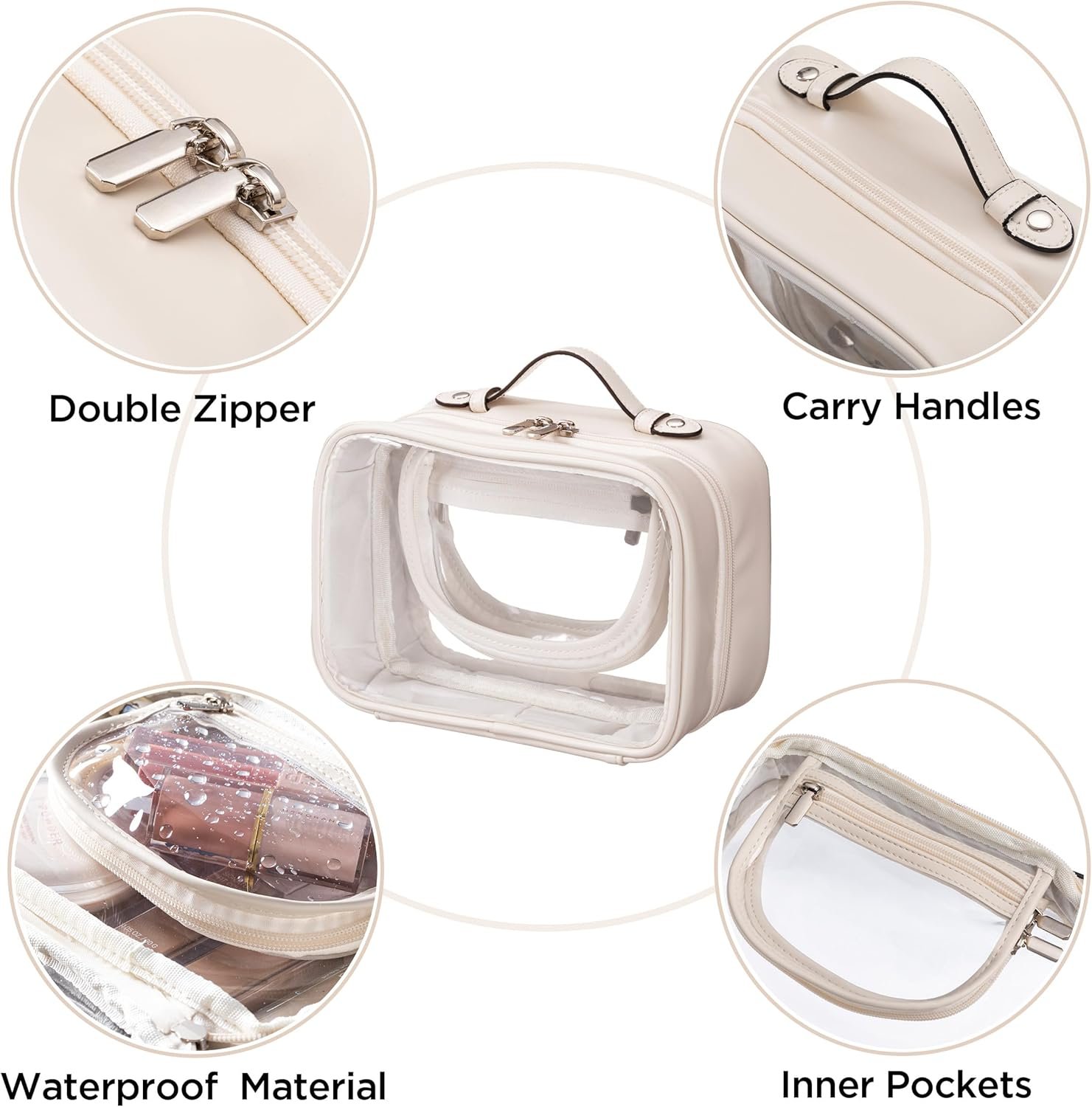 HBselect TSA Approved Toiletry Bag, Clear Makeup Bag Travel Toiletry Bag for Women Girls, Portable Waterproof Makeup Bag Organizer Transparent Cosmetic Bag Travel Accessories Essentials (Small Beige)