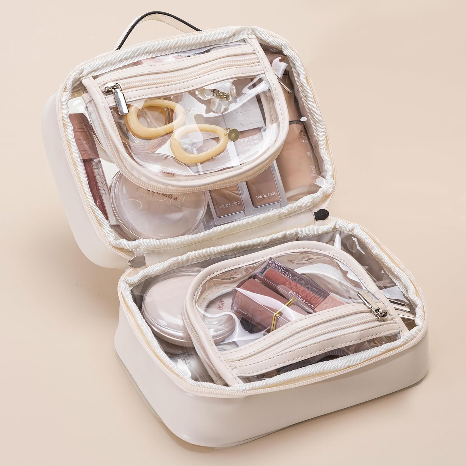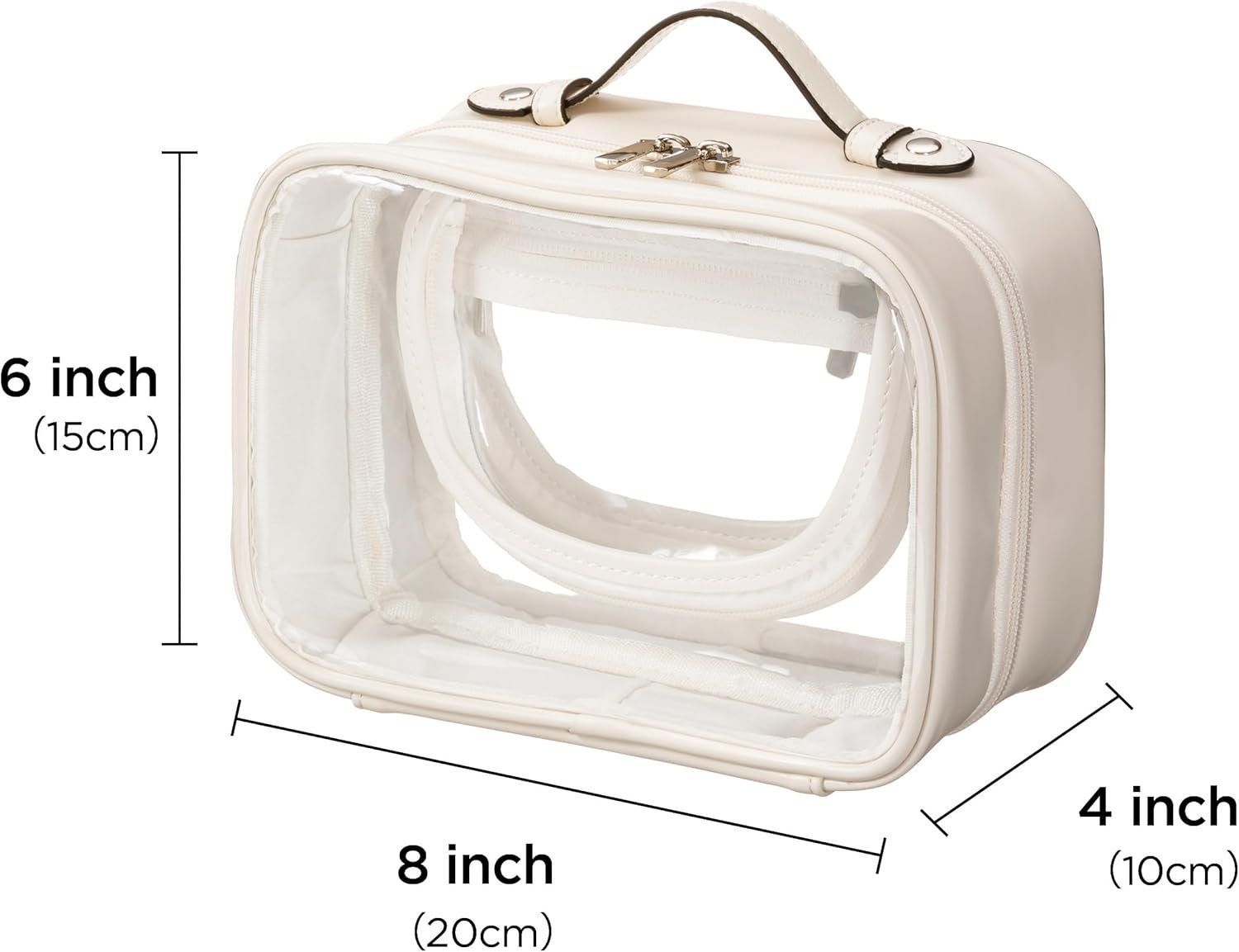 【Premium Waterproof Material】: Our makeup bags are crafted with high-quality TPU waterproof material and premium PU leather, feel creamy and silky to the touch. The transparent PVC material is stylish and easy to clean. Equipped with dual stainless-steel zippers and a convenient flat handle, it’s built to withstand the test of time and provide exceptional convenience.