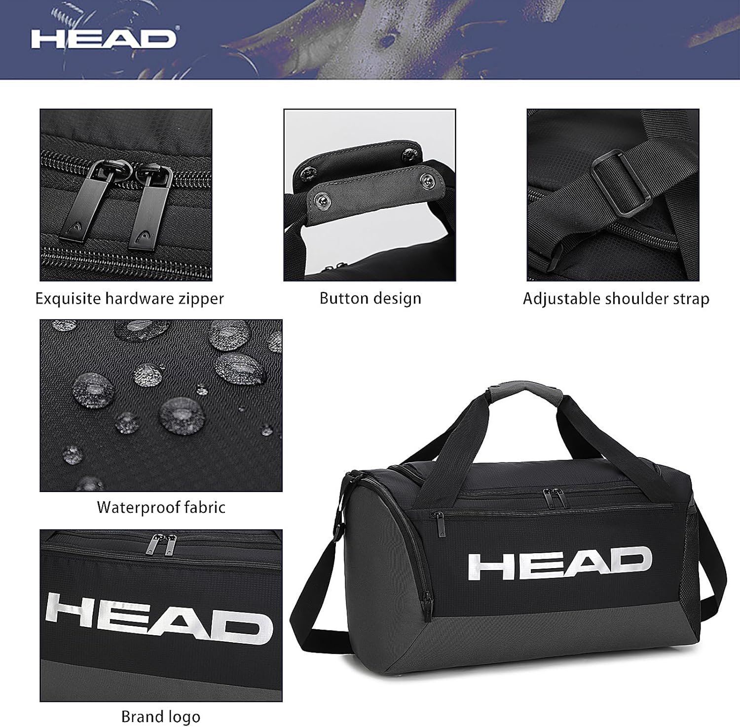 HEAD 45L Waterproof Tennis Duffel Bag for Men, Large Capacity Sports Gym Bags with Shoes Compartment, Lightweight Crossbody Duffle Bag for Business/Workout/Fitness/Weekender/Overnight