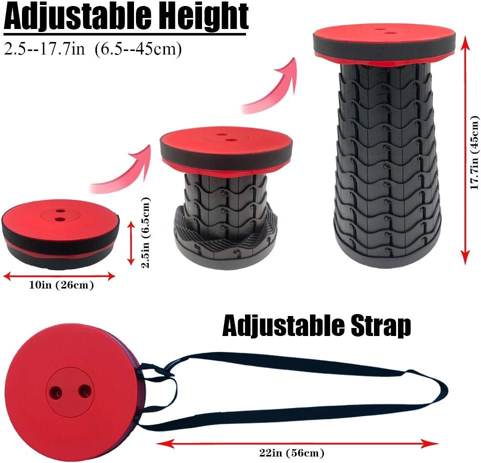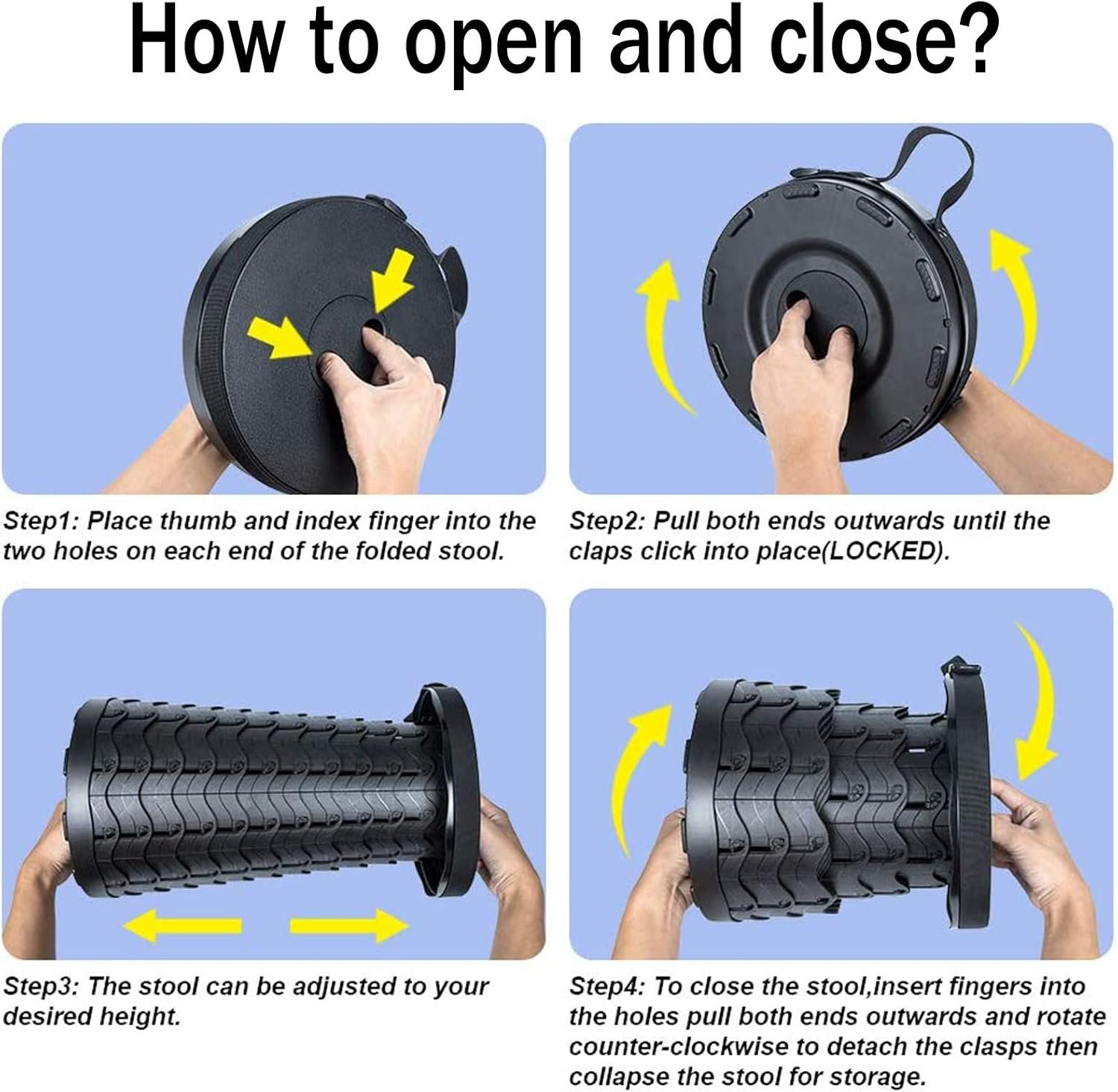 【Upgraded Material Safe and Stable】– Portable telescoping stool made of high-strength nylon and PA66 material, the body consists of 120 locks. Compared to the first generation, support takes on fish scale design, the overall appearance is nicer, the structure is more stable and the load capacity is larger, which can reach 400lb.