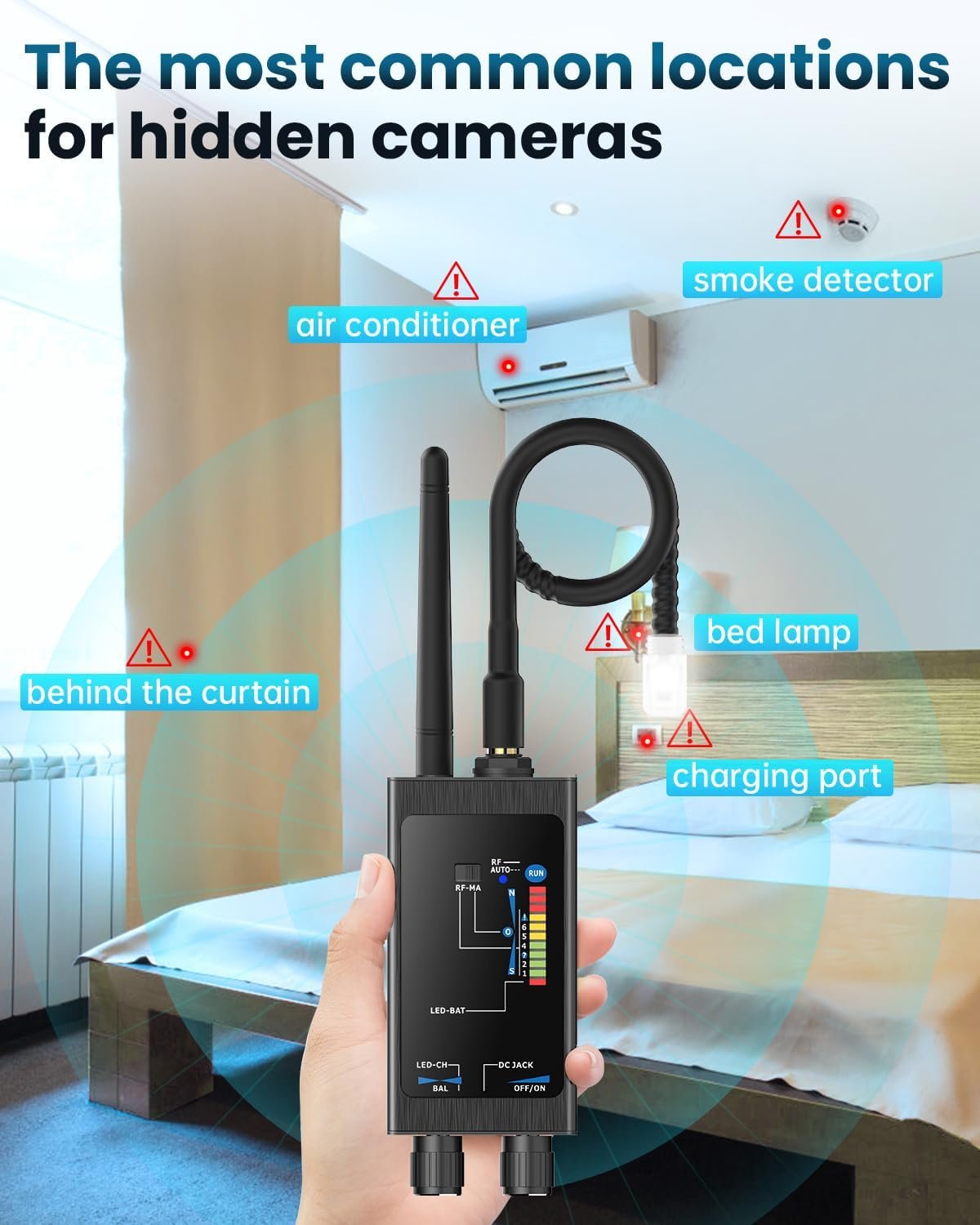 Superior Accuracy —- Wide detection range benefits by latest technology of FIBATDOR hidden camera detector. More accurate, wider detection range, and able to detect more bugs. This hidden camera detector is your reliable privacy protector