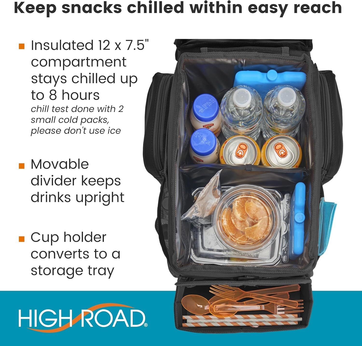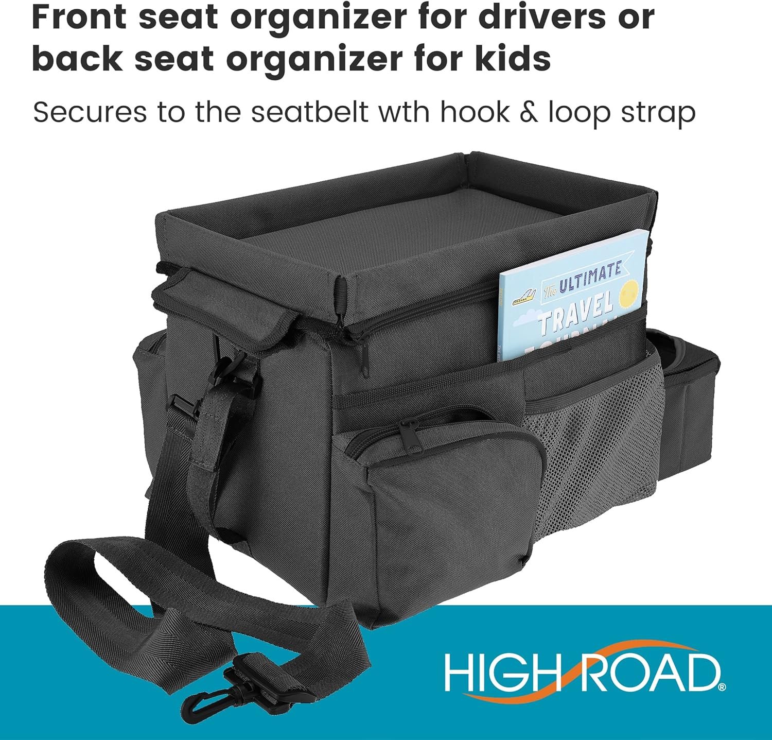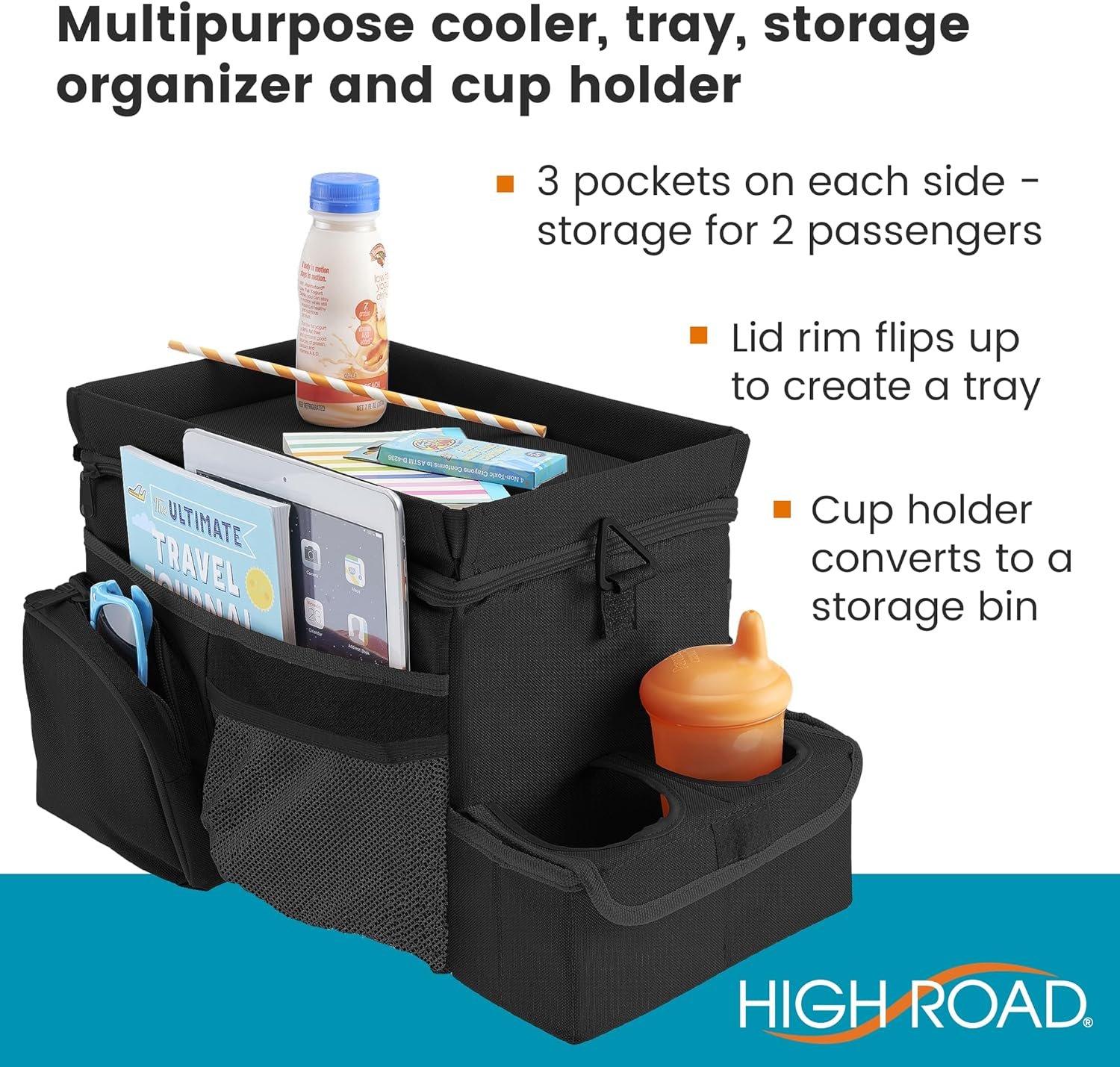 High Road CarHop Car Seat Organizer for the Front or Back Seat for Kids and Adults with Cup Holder Tray, Side Pockets and Cooler Compartment