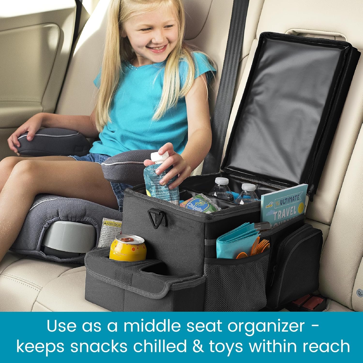 A Car Seat Organizer and Cooler for the Front or Back Seat – versatile organizer keeps kids entertained in the back and driving and work essentials organized in the front
