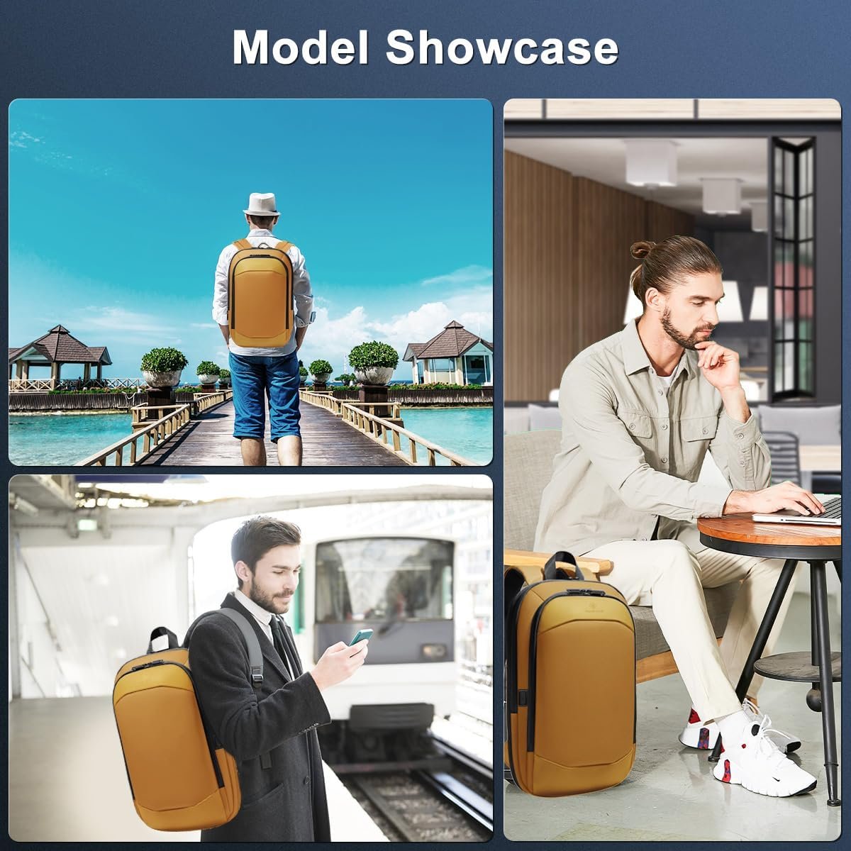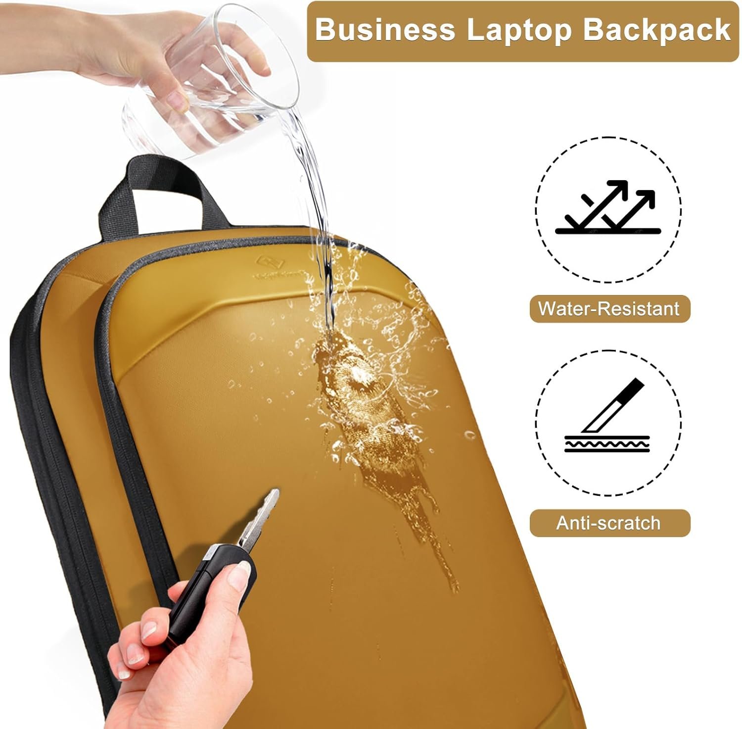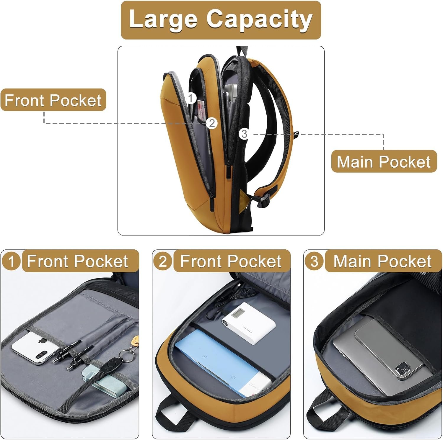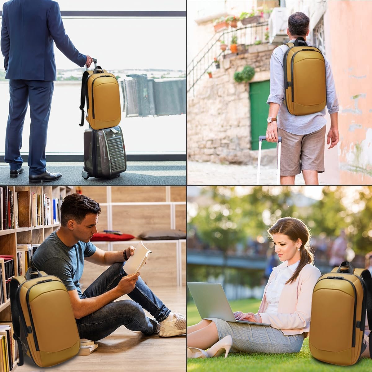 hk Business Backpack for Men 17 Inch,Slim & Expandable Waterproof Travel Laptop Backpack with USB Charger Port (Yellow)