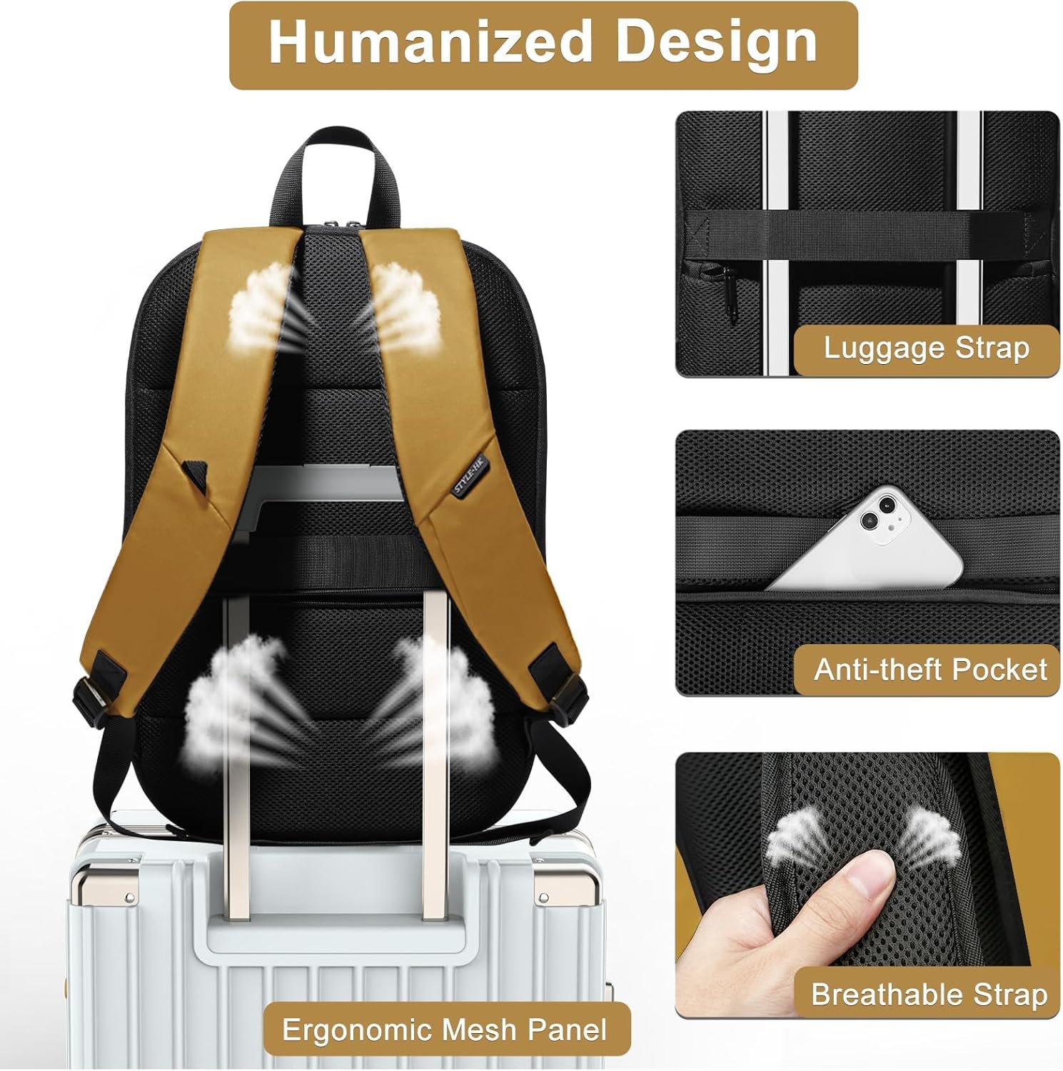The luggage strap on the back of the anti-theft travel backpack for men is designed for traveling to help you free your hands.