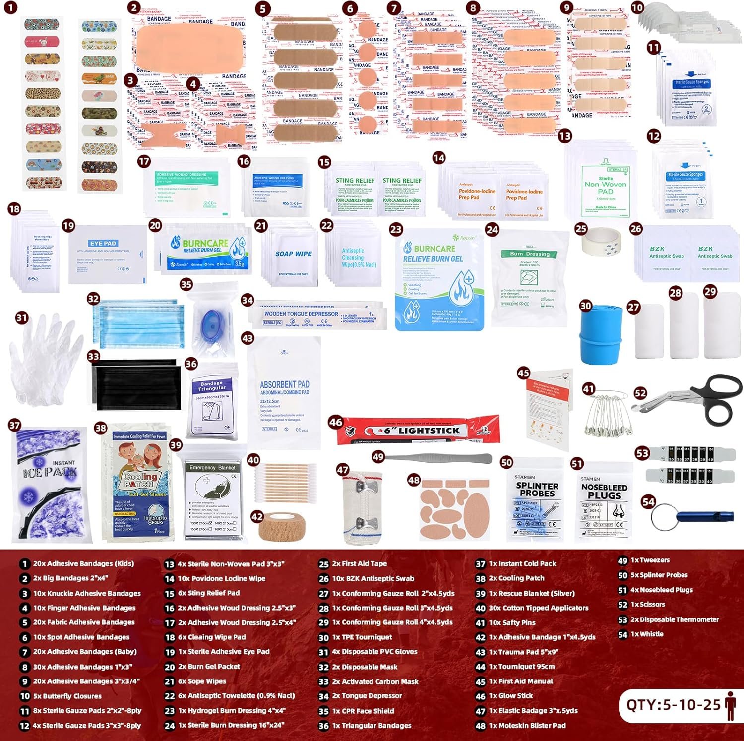 👨‍👩‍👧‍👦【GREAT FOR SMALL GROUPS & FAMILIES 】- Everything you need of emergency essentials are in this kit ! 305PCS (for 5/10/25 person) high quality hospital-grade medical supplies to help care for minor wounds, cuts, scrapes, trauma, burns, scalds, sunburn and other most potential emergency.