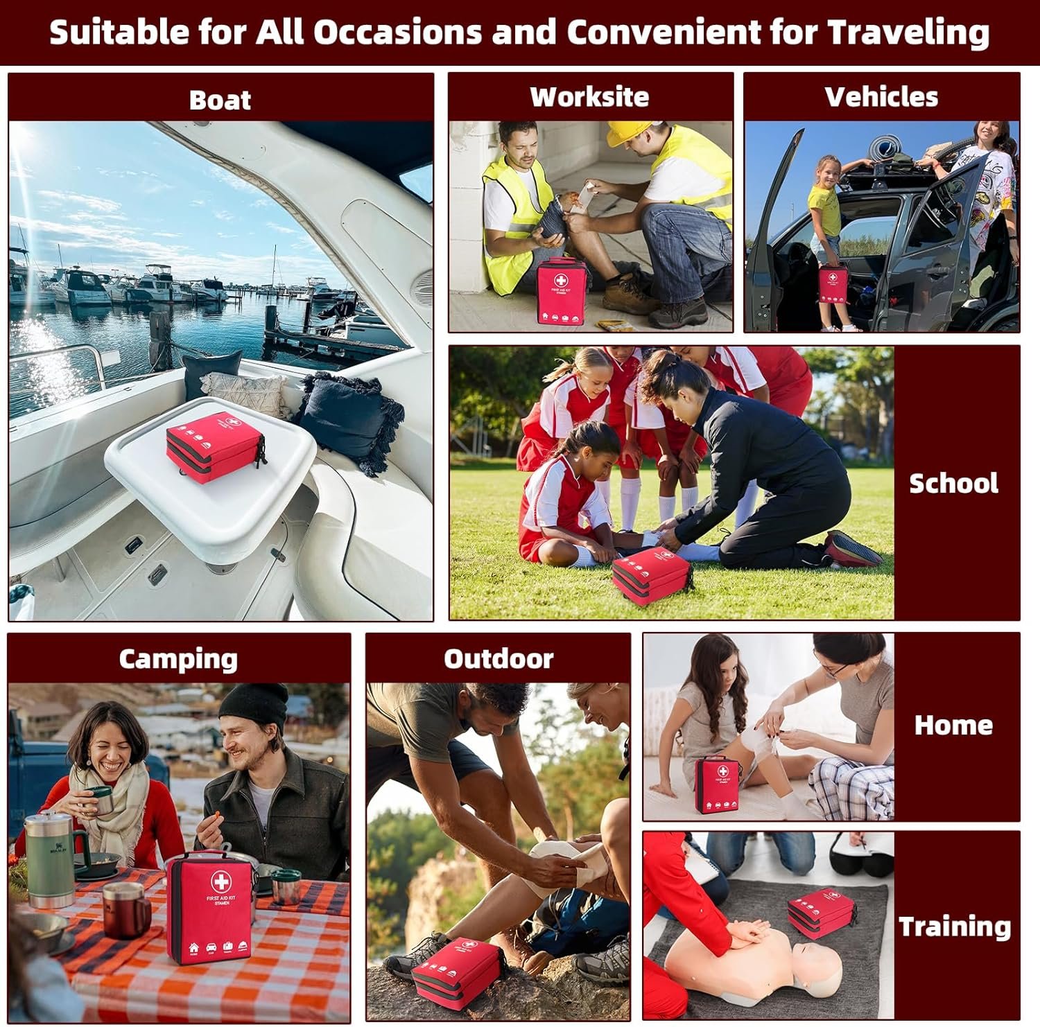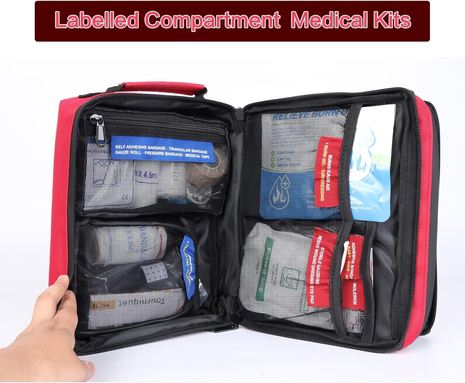 Home-First-Aid-Kit-for-Car-Travel-Camping-Businesses Survival, Labelled Compartment Comprehensive Emergency Trauma Medical Kit with Tourniquet, Ideal for Boat, Vehicles, Truck, Hiking
