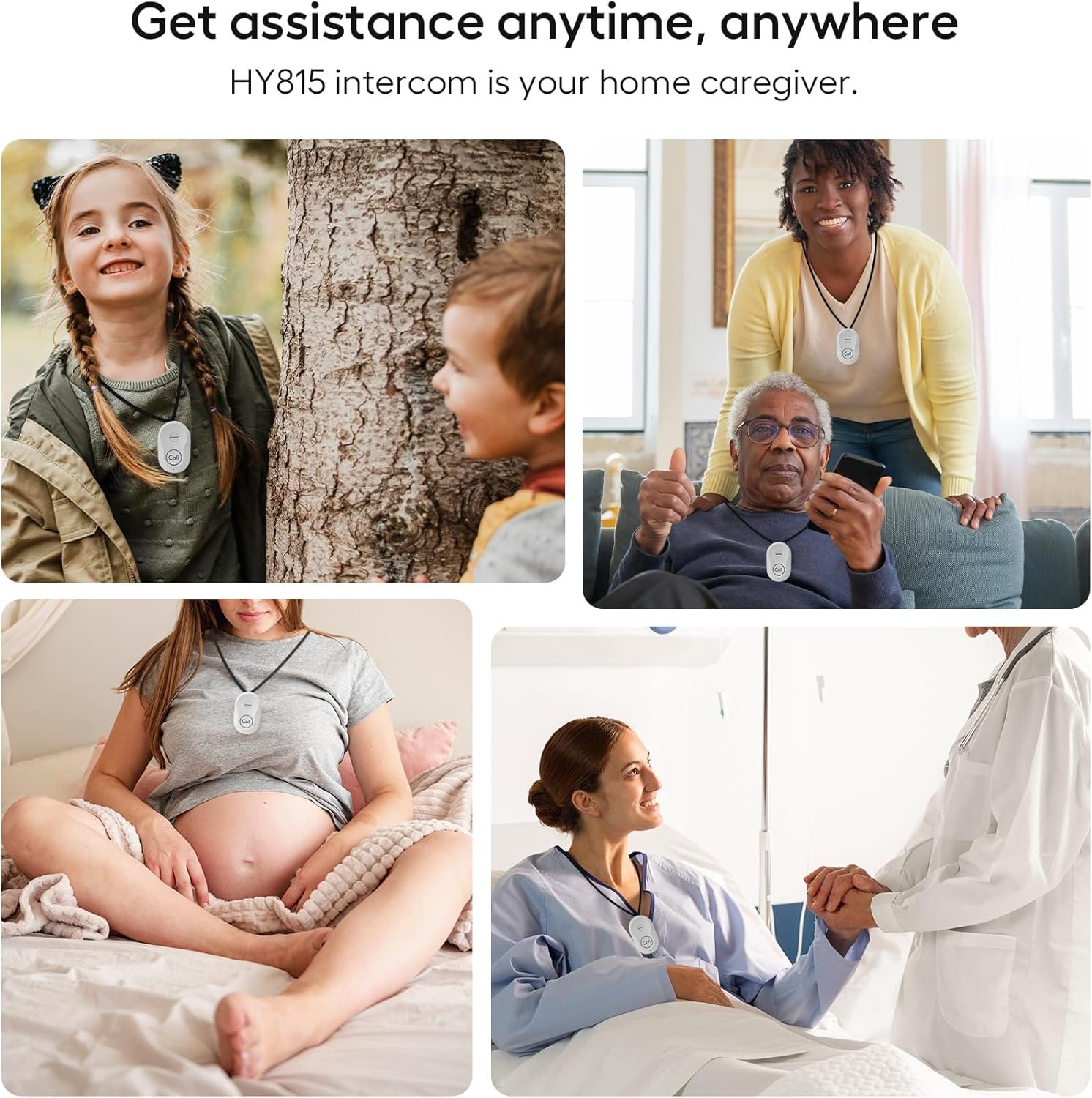 Hosmart Intercoms Wireless for Home, 2024 New Rechargeable Full Duplex Caregiver Pager for Elderly Senior, Two-Way Real-time Talk, Portable Personal Alert, Call/Monitor Button for Home Safety