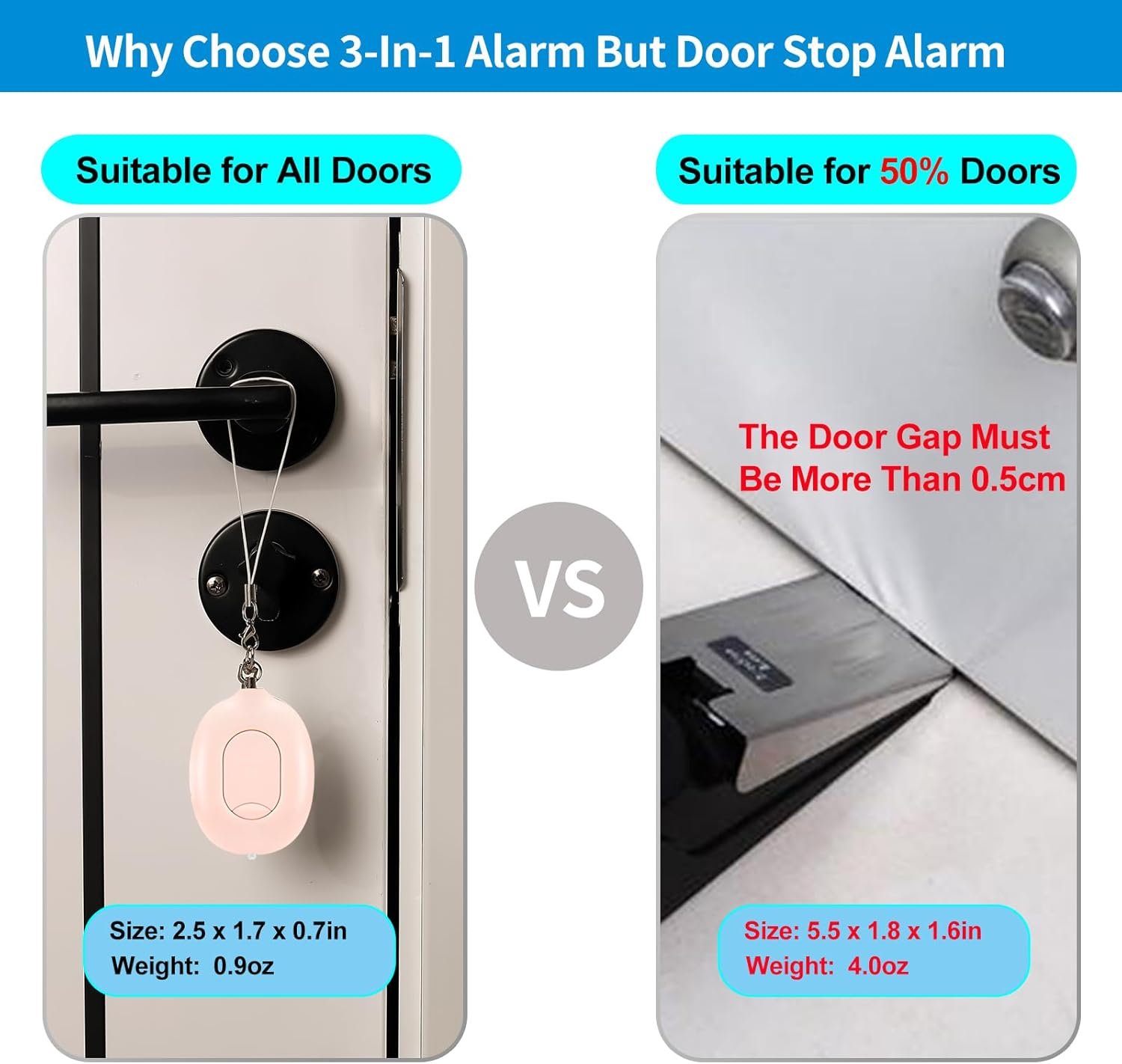 Hotel Door Alarms When Opened, Door Stop Alarm, 3-in-1 Travel Safety Keychain for Women Self Defense, Luggage Anti-Theft, Door Handle Stopper Doorstop, College Girl Apartment Essentials