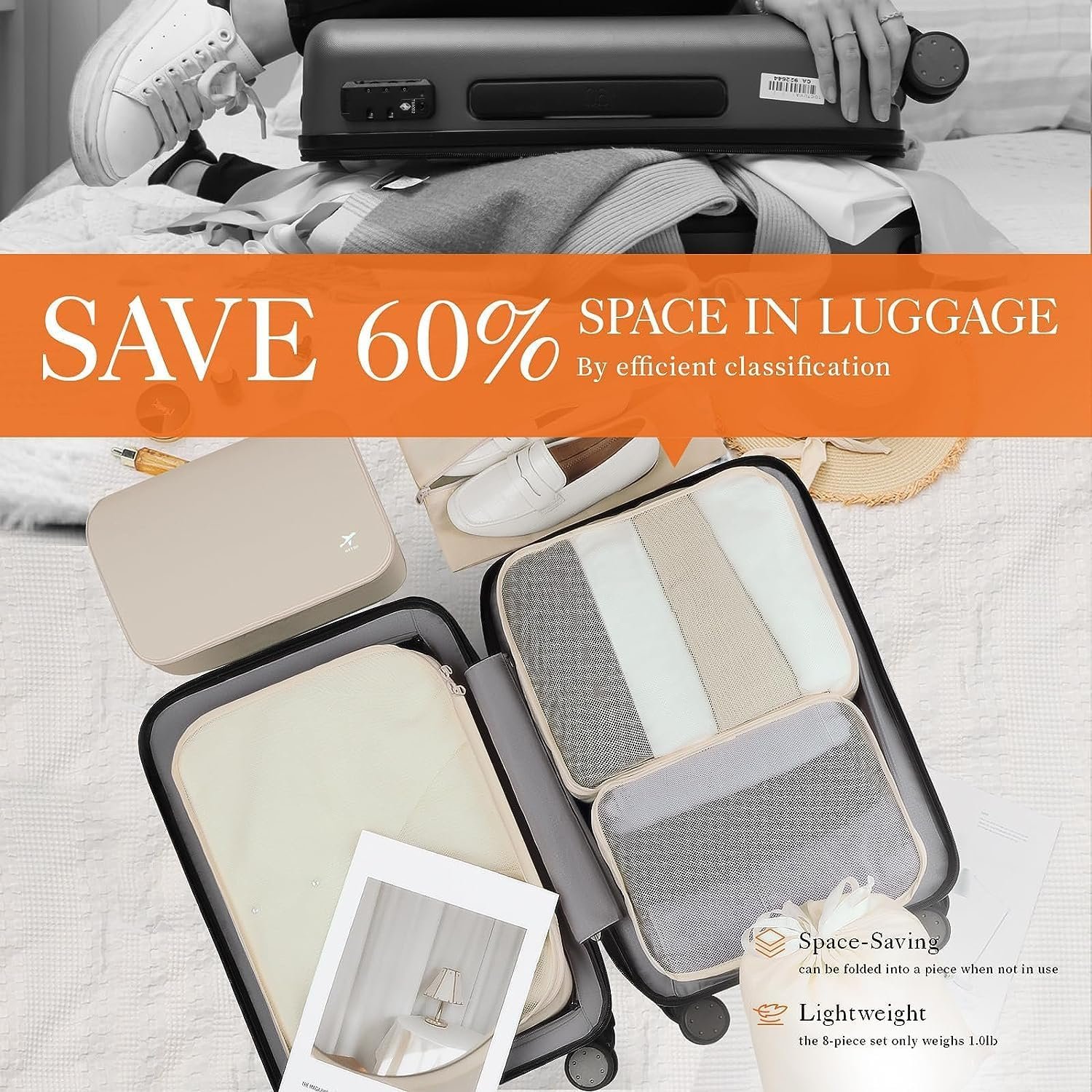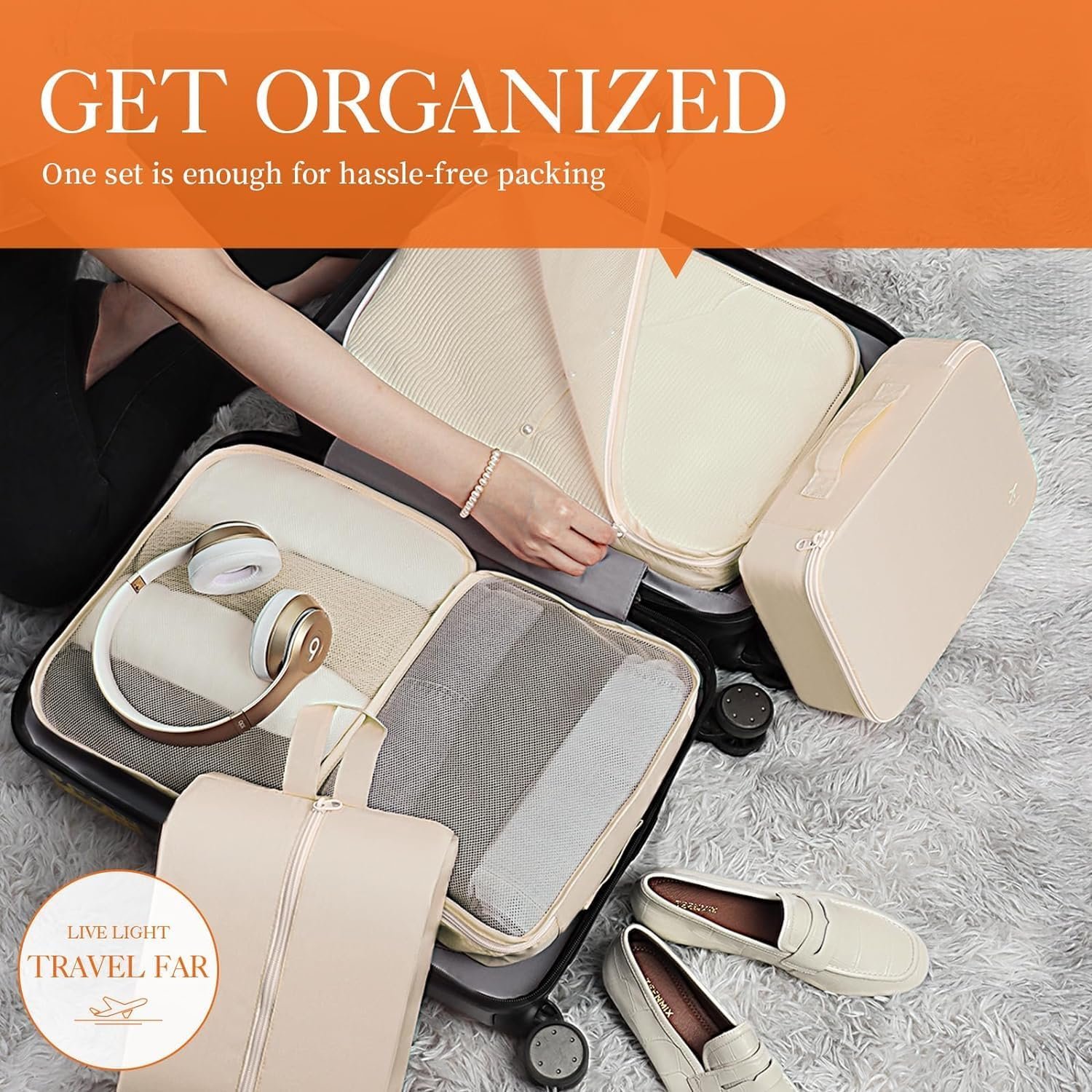 HOTOR Packing Cubes for Suitcases – 6 Pieces, Light Packing Cubes for Travel, Premium Suitcase Organizer Bags Set, Space-Saving Luggage Organizers, Travel Accessories and Essentials, Beige