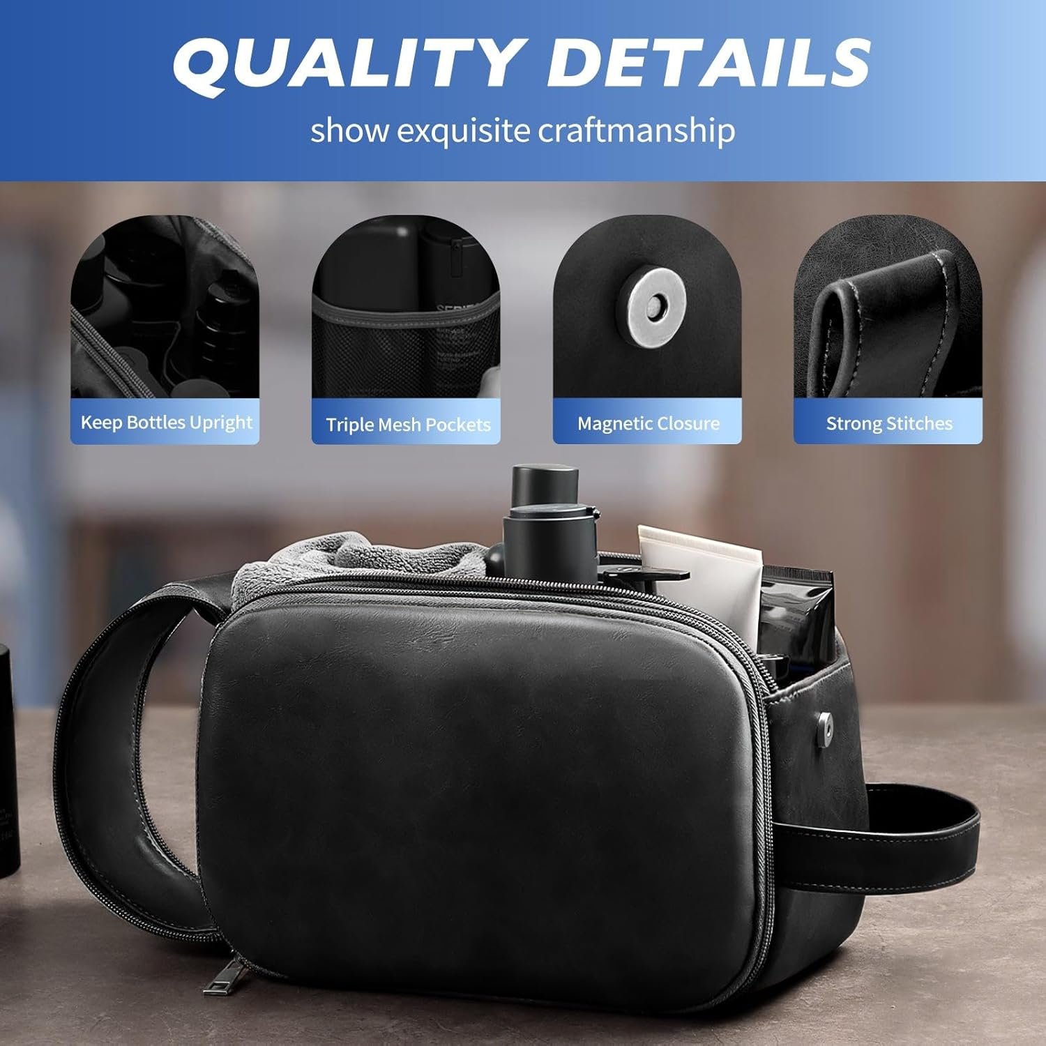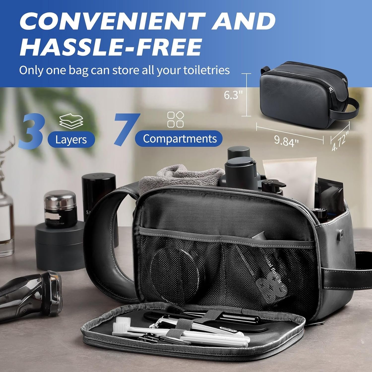 ORGANIZED LAYERS, CLUTTER-FREE: This travel bag for toiletry features 3-tiers and 7 separate compartments and mesh pockets, elegantly organizing all your toiletries and shaving essentials. HOTOR travel accessories are made for a hassle-free travel experience.