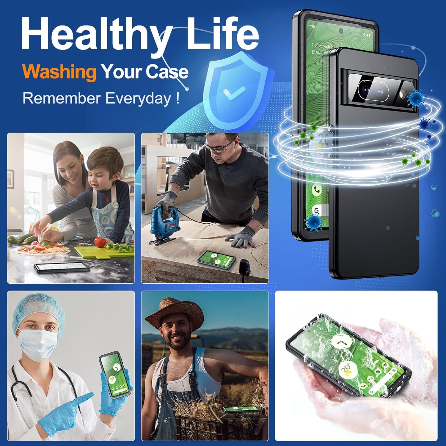 【IP68 Waterproof】Hualele waterproof case is IP68 Waterproof Certified. The pixel 7 waterproof case survives depths of 6.6ft/2m underwater for up to 31 minutes, providing optimal protection against water. It’s a great choice for underwater activities or outdoor sports like swimming, snorkeling, surfing, etc. it the perfect accessory to protect the device from the elements.