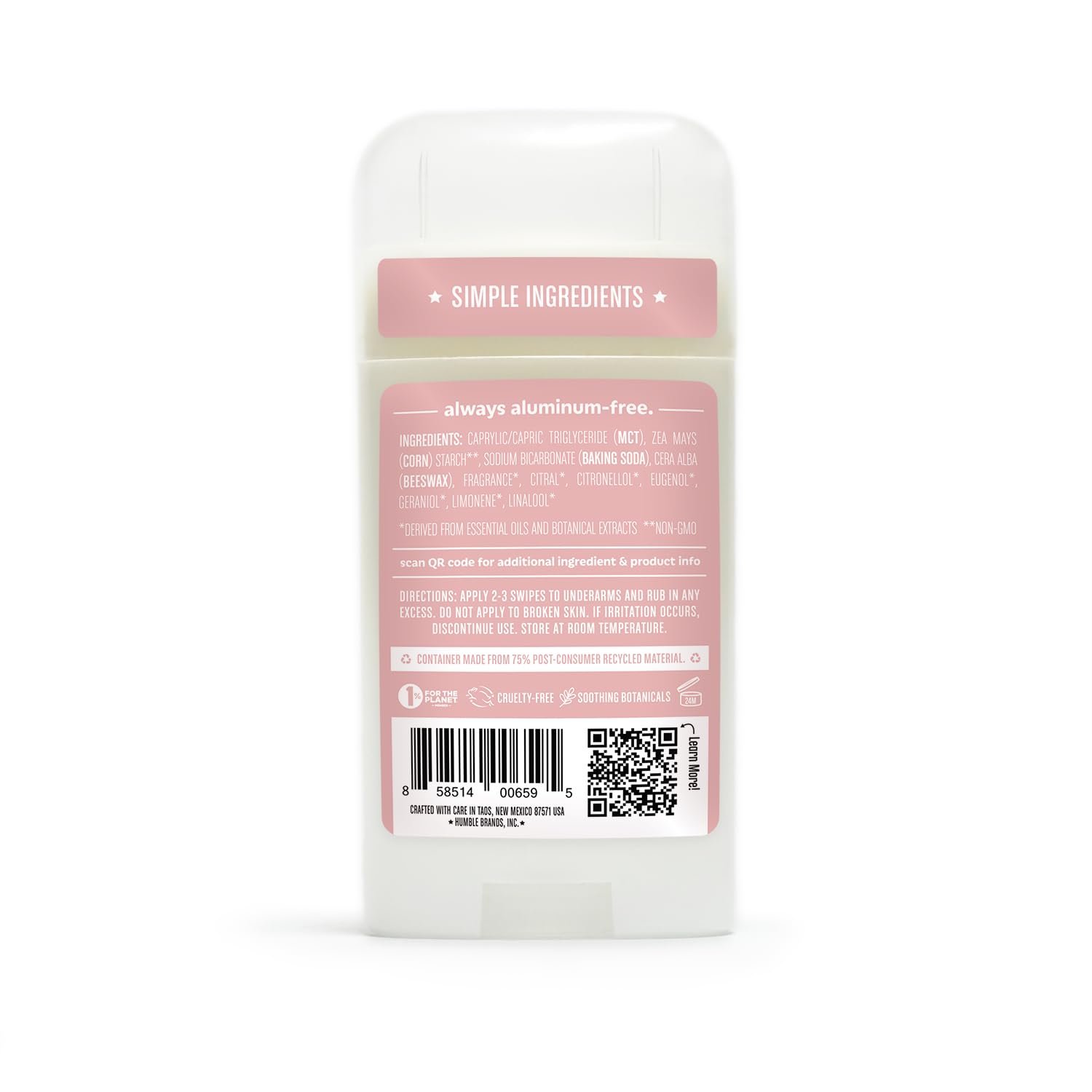 SIMPLE INGREDIENTS: Humble Brands deodorants provide all of the odor control of traditional deodorants without aluminum, alcohol, dyes, or artificial fragrances.