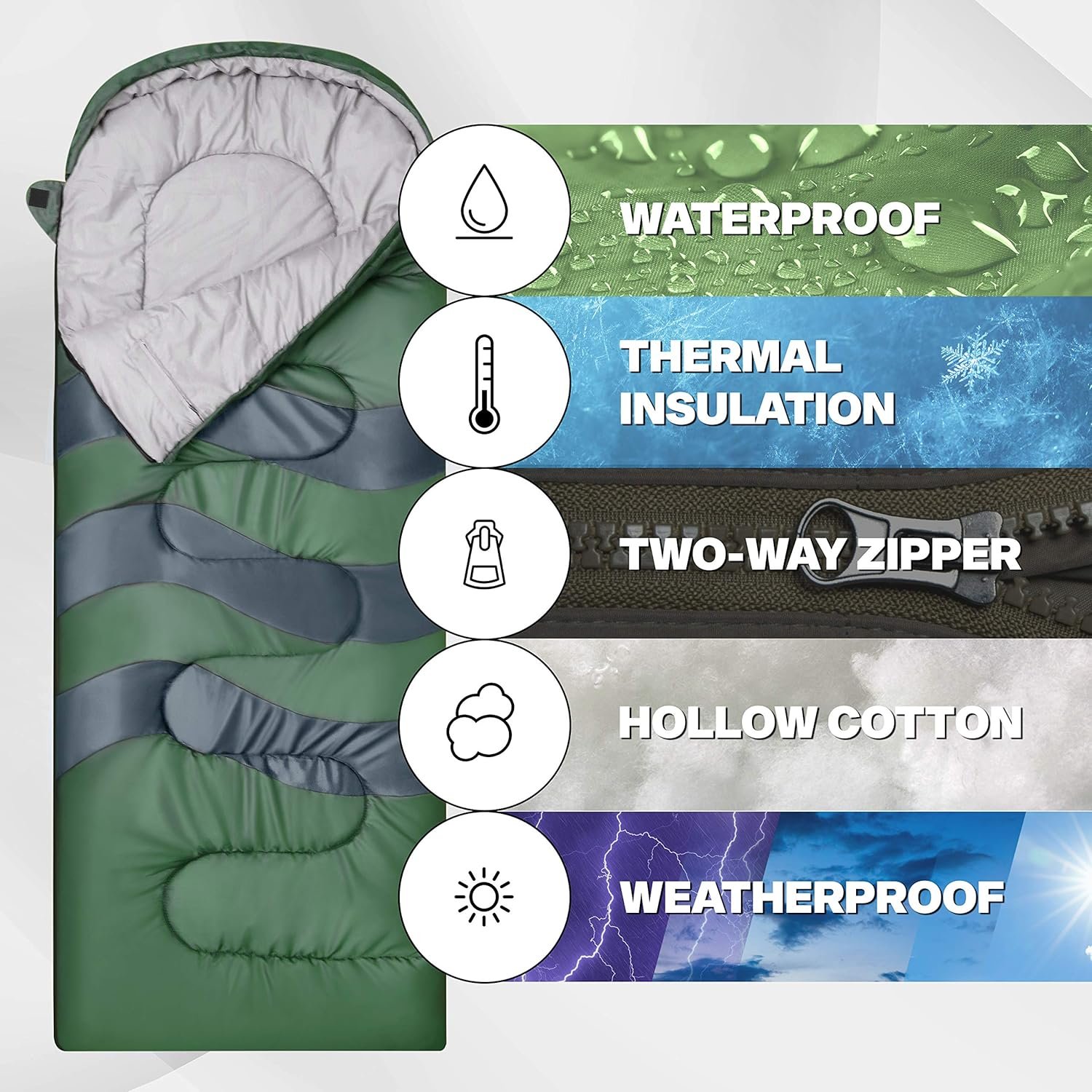 🌧️ Water-Resistant & Durable: Crafted with a waterproof outer shell, this camping sleeping bag keeps you dry and protected during unpredictable weather conditions.