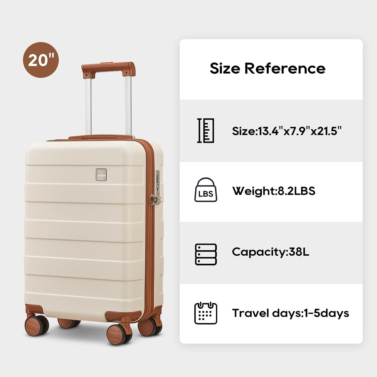 imiomo Hard Shell 20 Inch Carry on Luggage 3 Piece Set with Travel Backpack, Lightweight Hardside Carry-On Suitcase with Spinner Wheels and TSA Lock, Beige