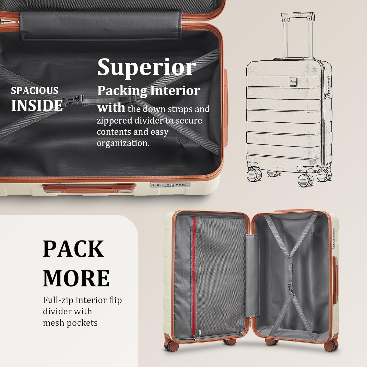 imiomo Hard Shell Luggage Sets 5 Piece for Women, Lightweight Hardside Rolling Suitcase Set with Spinner Wheels and TSA Lock, Beige