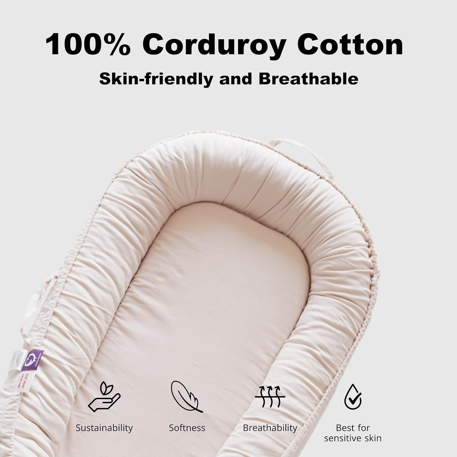 Infant Lounger, Baby Nest Cover for Baby Girls & Boys, Newborn Essentials for Baby 0-12 Months, 100% Cotton Breathable, Portable Travel Bed (CreamyWhite_Corduroy)