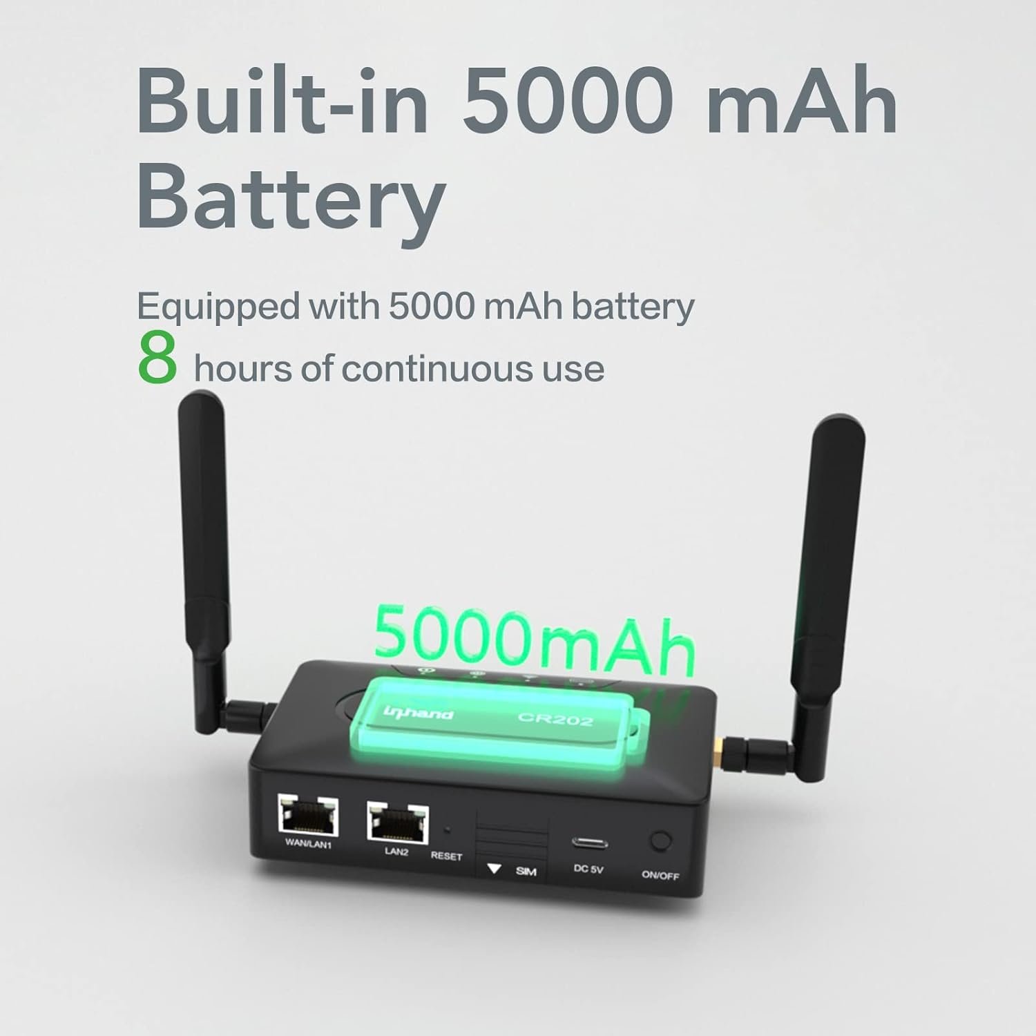 InHand Networks CR202 4G LTE CAT6 Pocket Portable Wi-Fi Router,Smart VPN Router,Travel Hotspot, Access Point, Extender, 5000 mAh Battery, Verizon,T-Mobile,AT&T cetified.