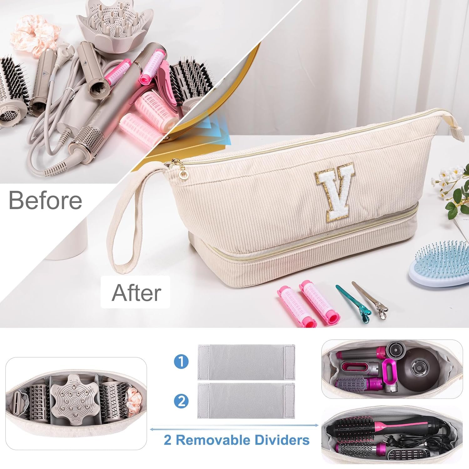 【GREAT GIFT 】This cute hair tools case comes with initial letter styles, making it an excellent gift for friends or family. It is a great bathroom and travel essential. The hair tool travel bag features a handle design for easy travel and portability. The compact size and portability are very suitable for home and travel use.