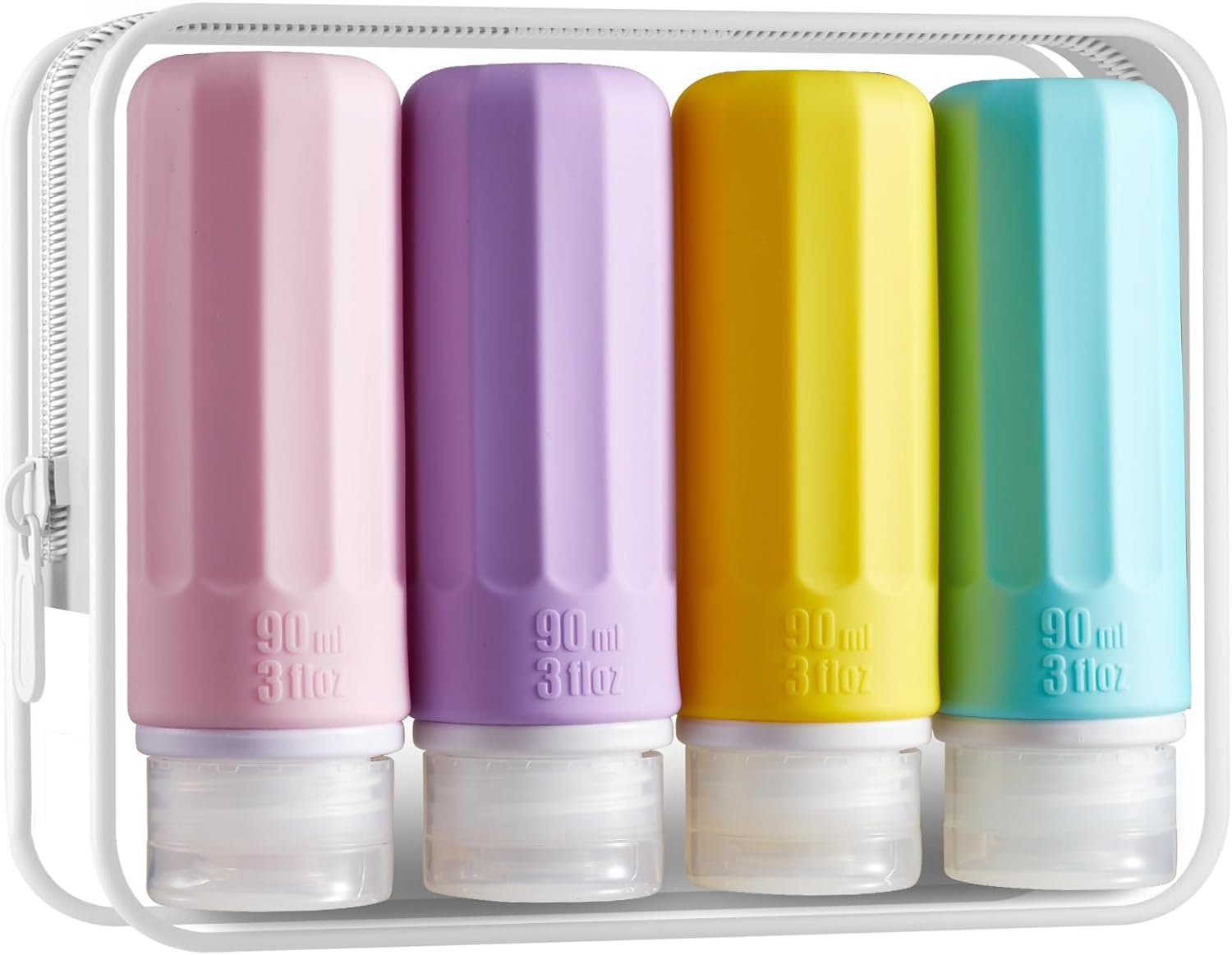 INSFIT Travel Bottles for Toiletries, TSA Approved 3oz Travel Size Containers, BPA Free Leak Proof Squeezable Silicone Tubes for Shampoo Conditioner Lotion Body Wash with Labels