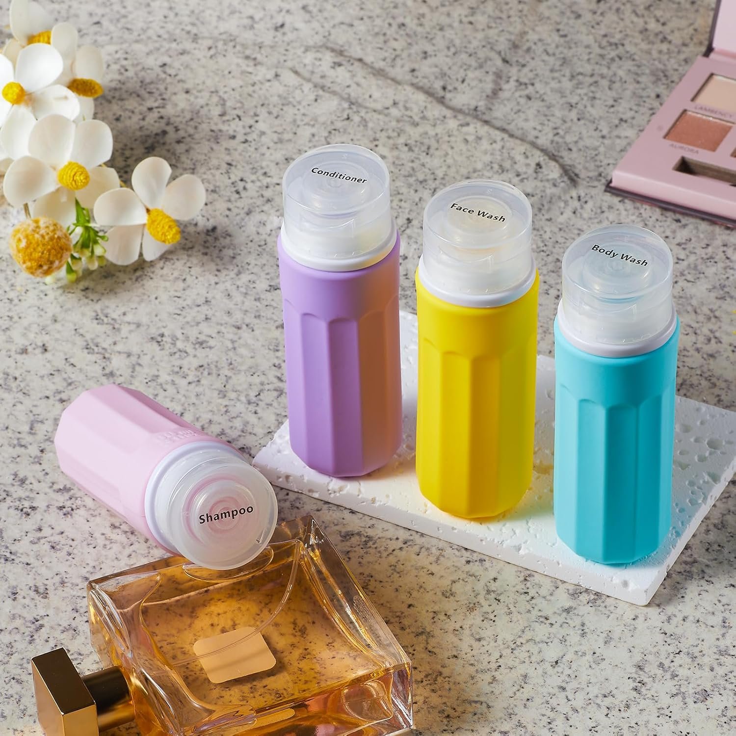 Food Grade BPA Free Silicone: our silicone travel bottles are made of BPA free food grade silicone, they are safe to use not only for liquids like shampoo or lotion but also for mouthwash, sauce, salad dressing etc. Enjoy the peace of mind that comes with using our containers made from high-quality, safe materials for all your travel needs.