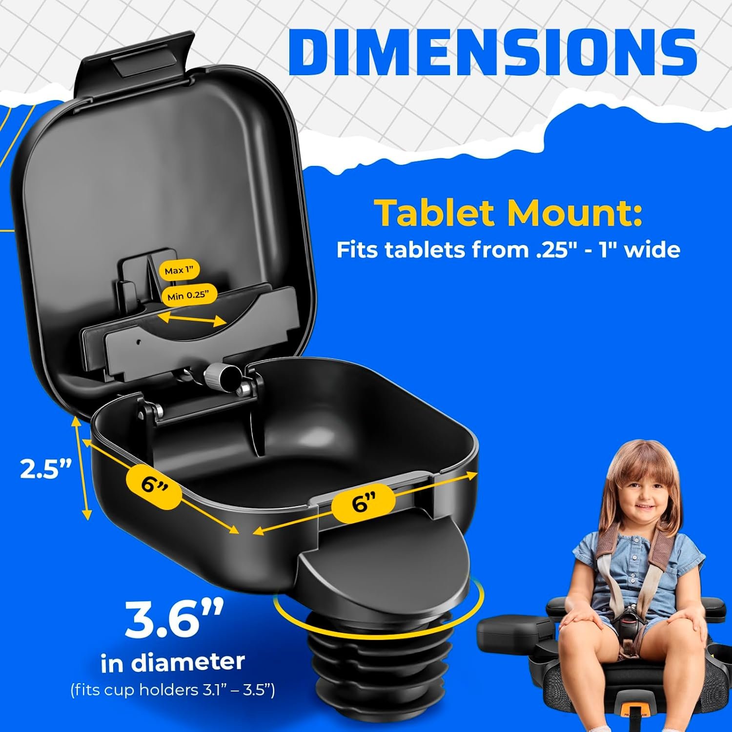 Integral Kids Console for Car Seat – Upgraded Car Organizer for Kids Adjustable Tablet Mount – Car Seat Cup Holder Console with Storage Container – Roadtrip Essentials for Kids – Large Base