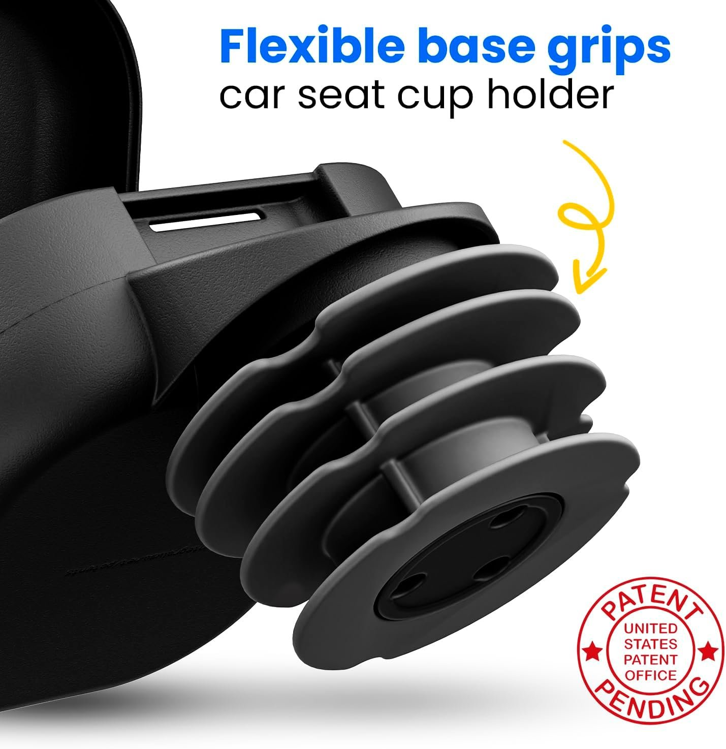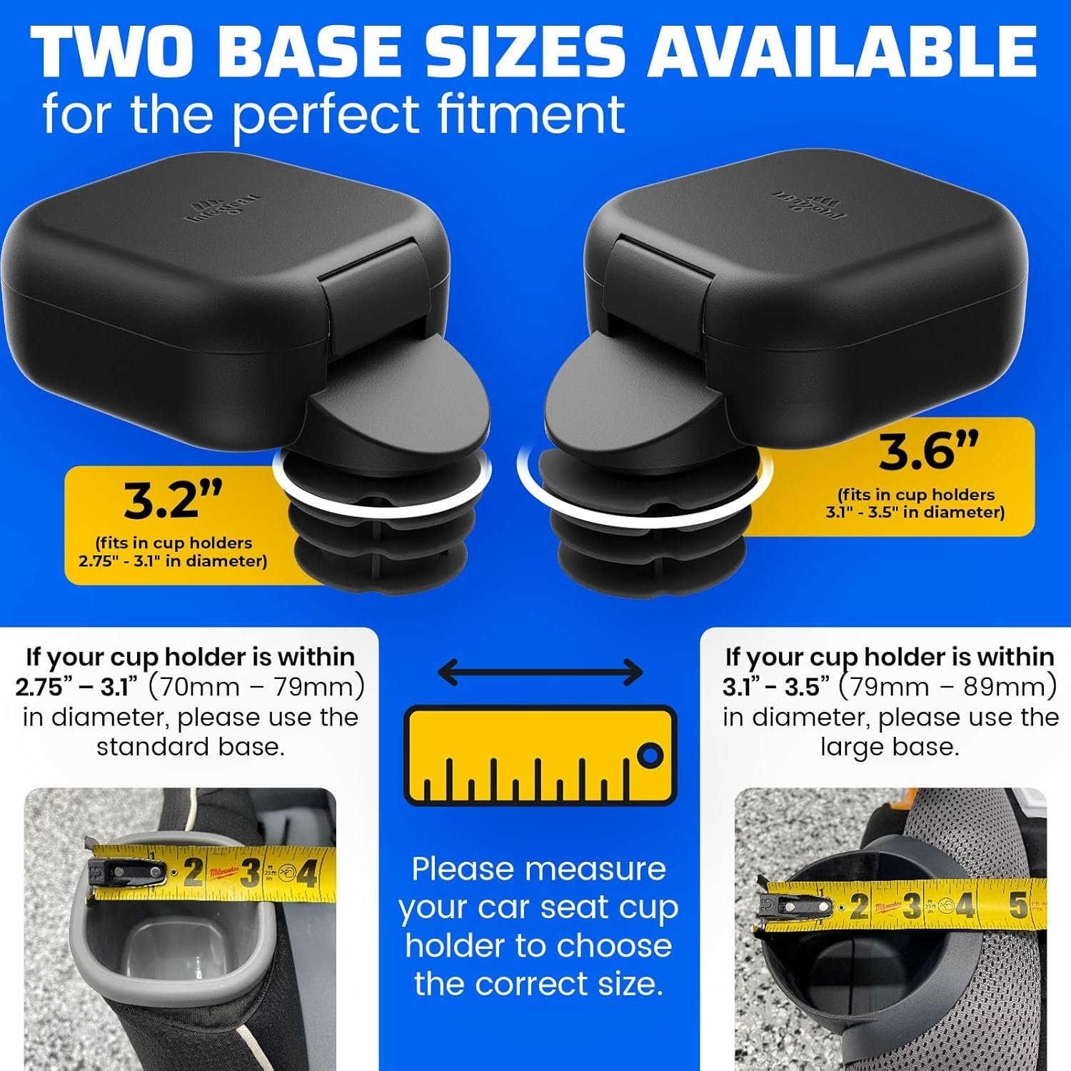 UPGRADED – SIMPLE INSTALLATION & UNIVERSAL FIT: It couldn’t be easier! 2 steps & 5 seconds are all it takes. Simply align the base with the car seat cup holder and push it down. No tools, no hardware, no problem. NOTE: We have two base sizes available for the best fitment possible. The large base design is only compatible with car seats that have solid cup holders from 3.1 – 3.5 inches (79mm – 89mm) in diameter. If your cup holder is smaller than 3.2 inches, please see our standard base option.