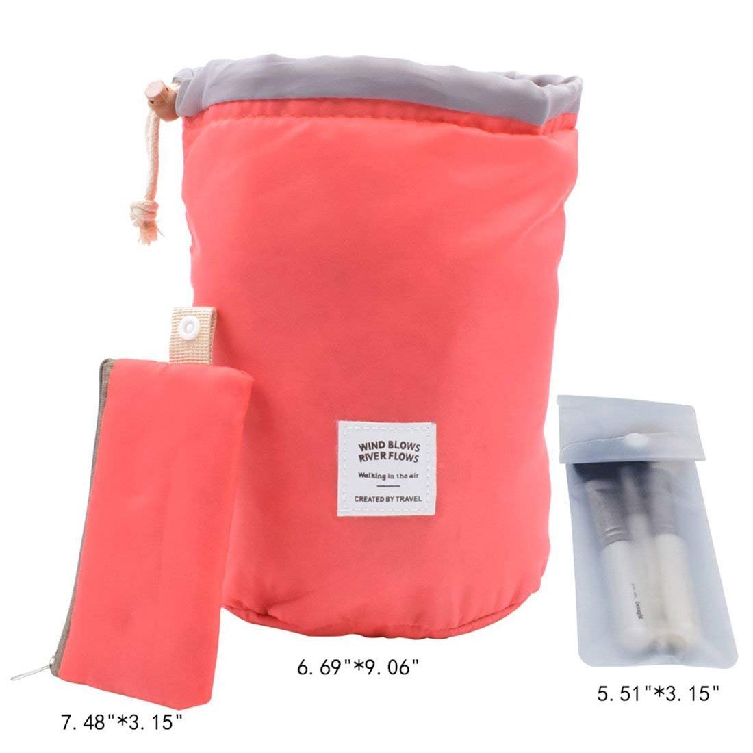 INVODA 2PCS Cosmetic Bag 2 Pieces Barrel Shaped Travel Makeup Bags Large Capacity Soft Waterproof Portable Drawstring Cosmetic Bag Multifunctional Bucket Toiletry Bag (Pink+Red)