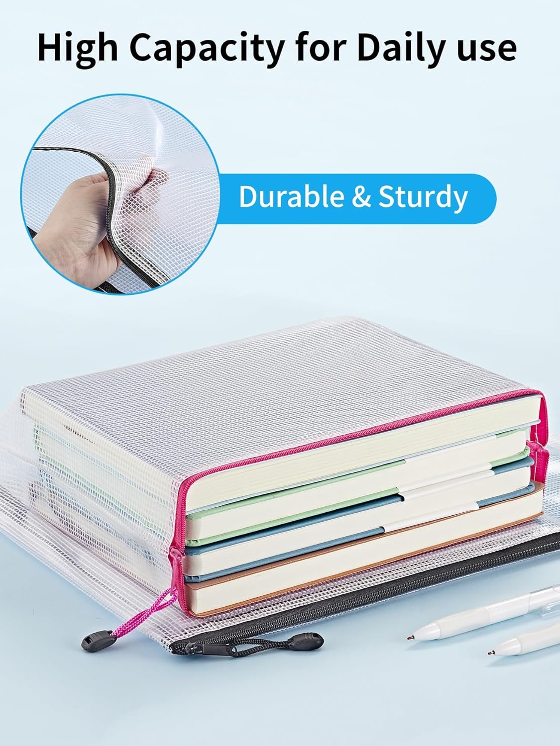Advantages: The translucent design and colorful zipper allow identifying items. Suitable for use in homes, schools, colleges, offices, and travel, can be used to organize books, paper, bills, photos, cosmetics, toys, etc.