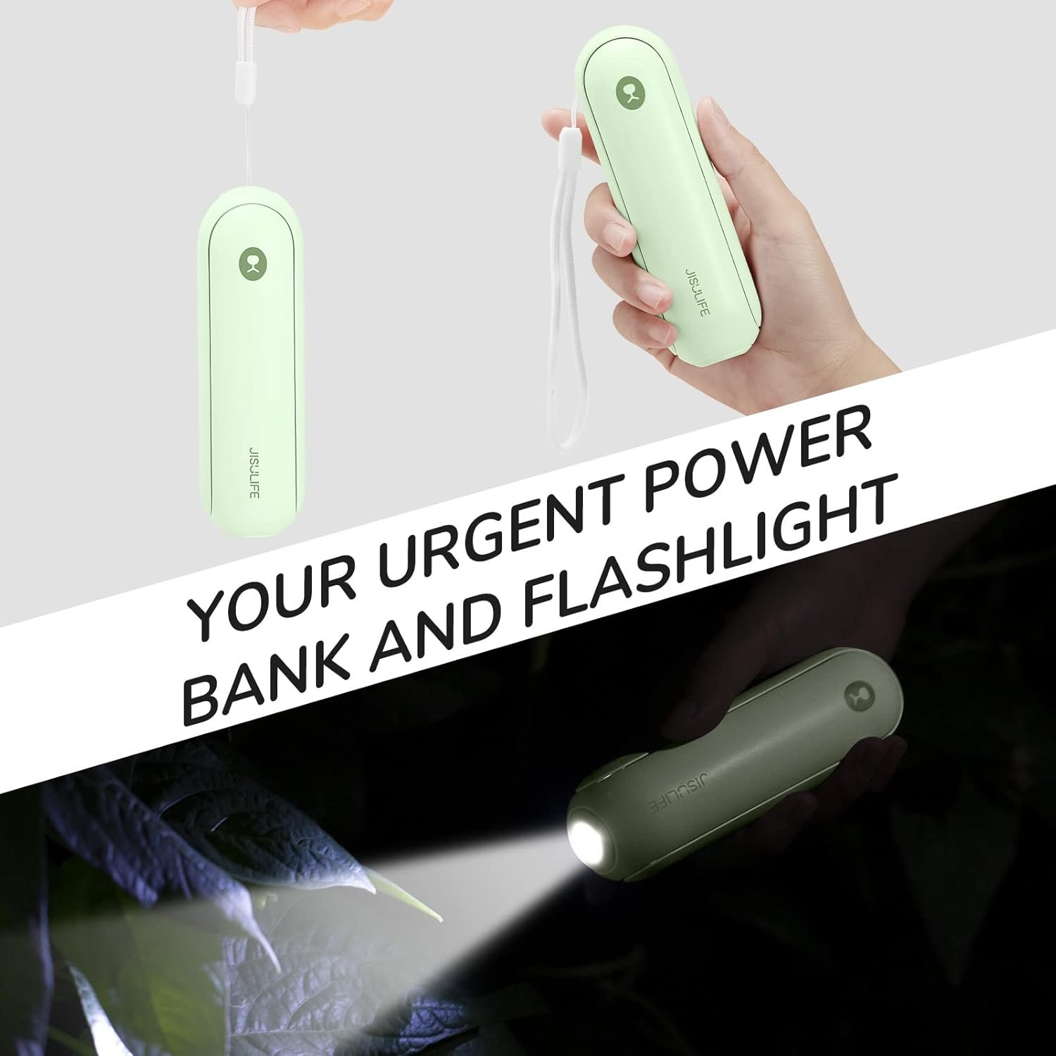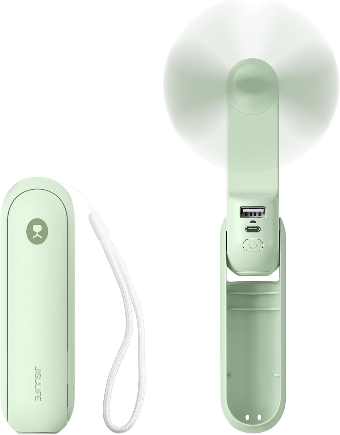JISULIFE Portable Handheld Fan, Mini 3 In 1 with Rechargeable Battery, Personal Pocket Fan for Travel, Outdoor, USB Power Bank, Flashlight, Essential Ideal Gifts for Men/Women/Family/Friends – Green