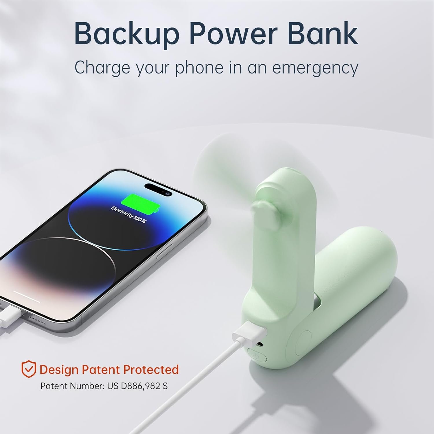 Power Bank Function and Quiet Operation: The USB output port turns the travel essentail fan into a power bank(2000mAh) in an emergency, providing power for mobile phones. With no frame design, make the noise low to 50db, which causes no disturbance during work.