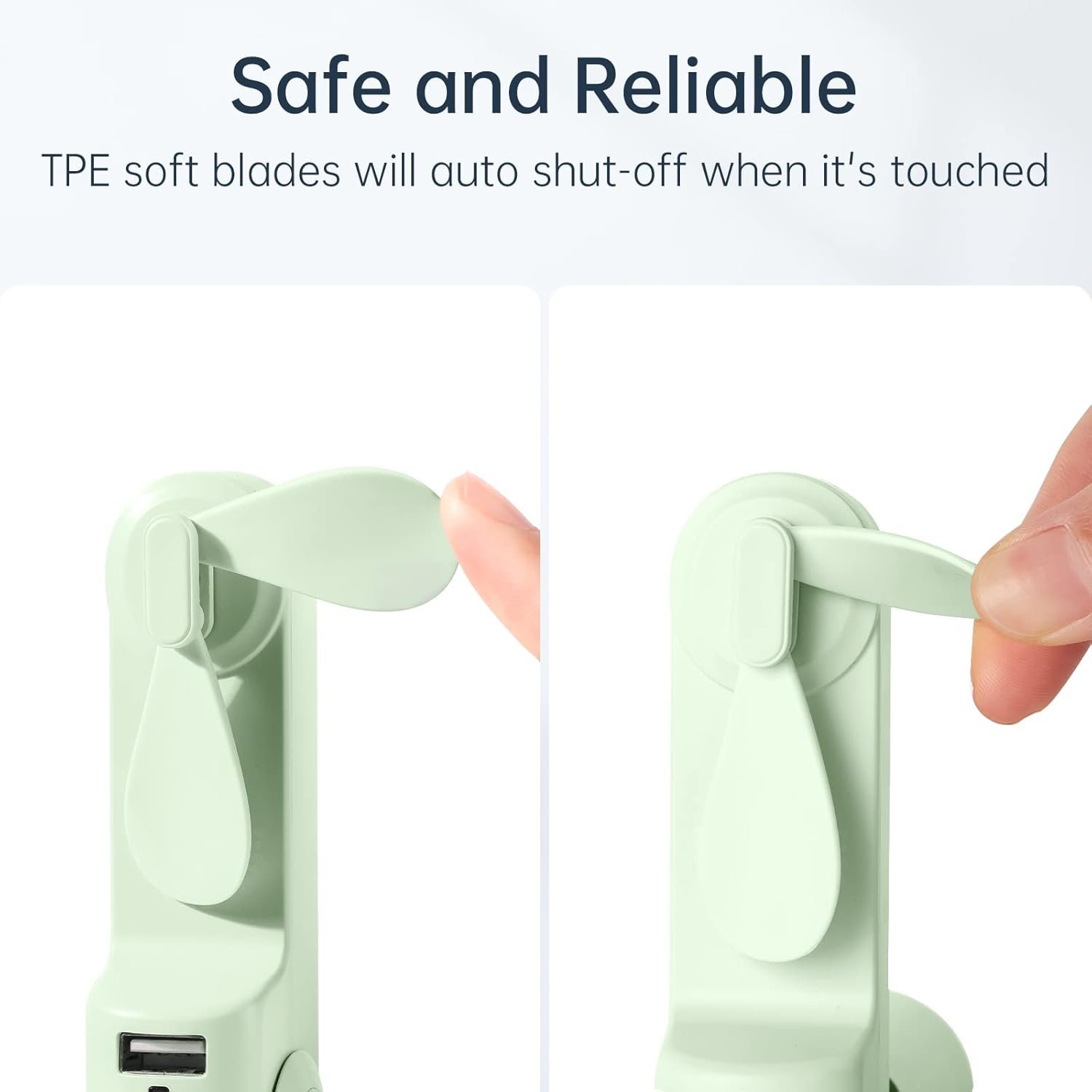 Foldable Design and Mini Size: Foldable design is easy to carry and store. In addition, this rechargeable fan comes in an oval shape (1.3*1.3*4.7 inches, weight: 4.4 ounces), which hides the fan blades, compact size, easy to fit in your pocket and purse.
