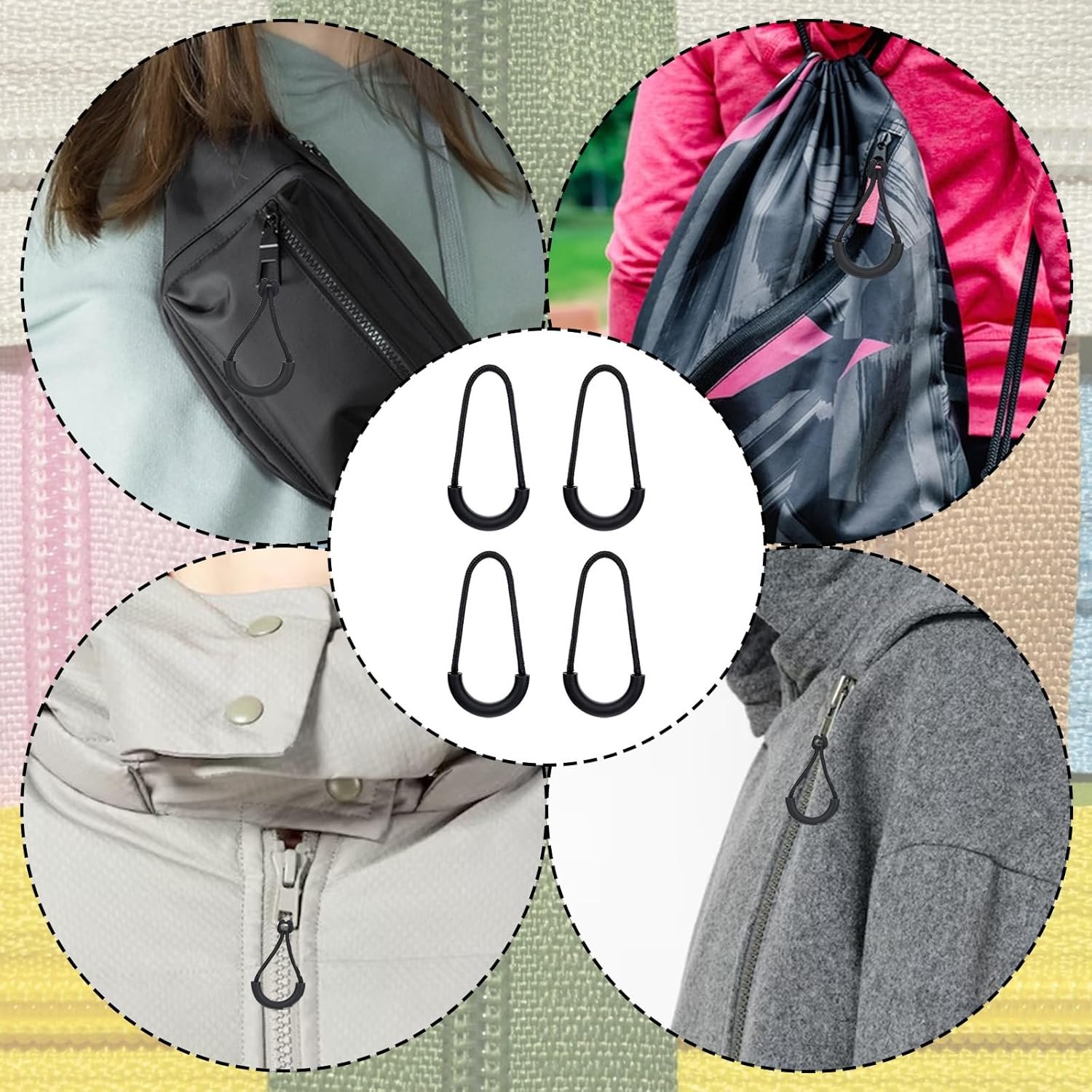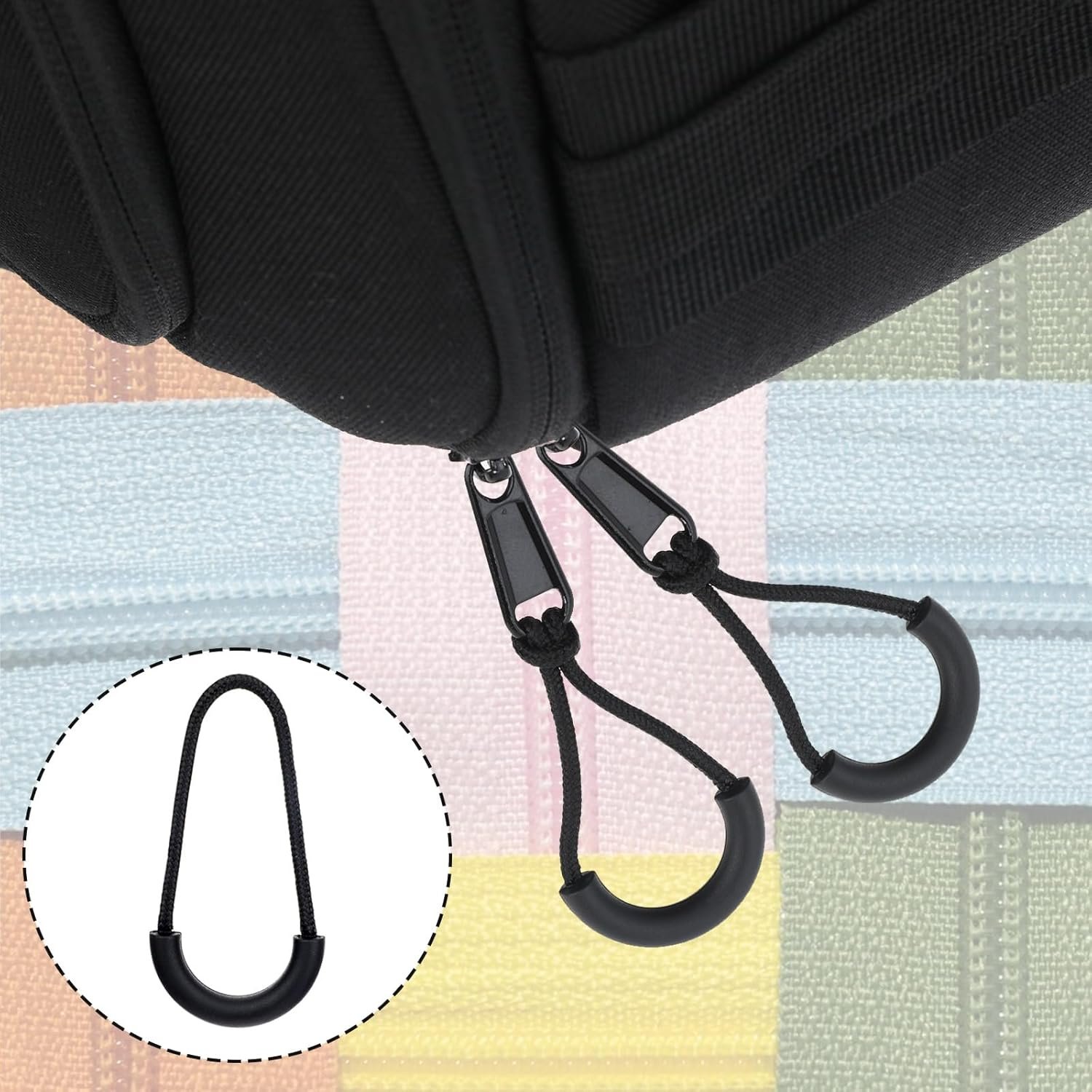 JJUNW 50PCS Nylon Zipper Pulls, Heavy Duty U Shape Zipper Tags, Zipper Extension Replacement, Zipper Clips Anti-Theft for Backpacks Luggage Bags Clothes Purse Handbags Traveling Cases (Black)