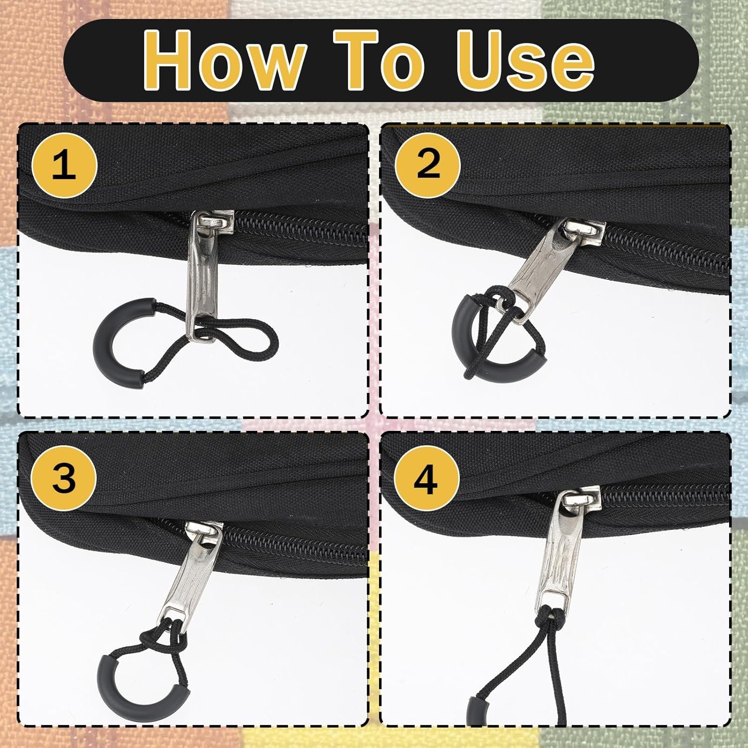 【Usage Steps】You start by feeding the end of the loop through the hole on your zipper, D-ring, or such type of opening, pulling it through as far as you can. Then, feed the other end through the loop you just created, and pull