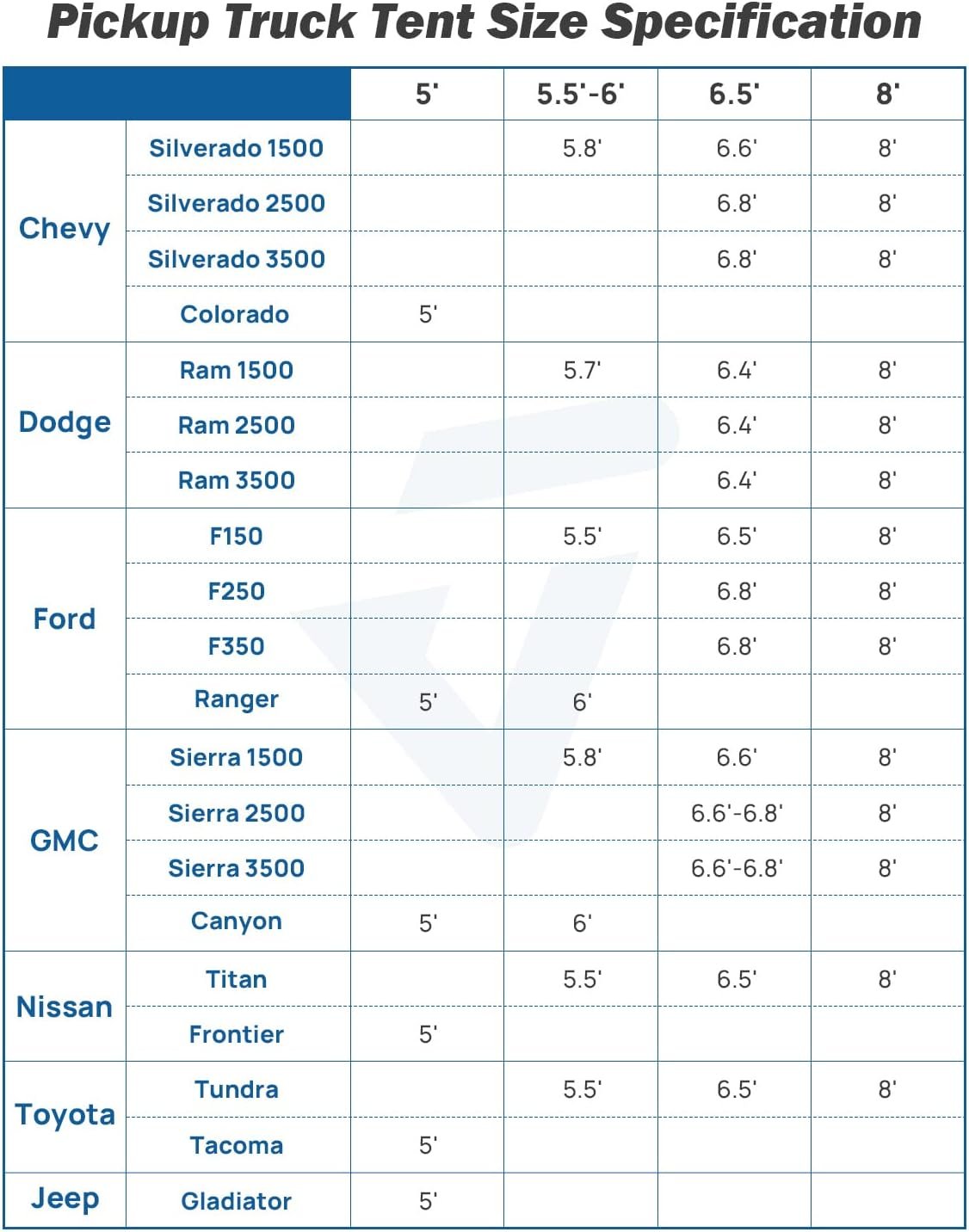 Compatibility: The truck bed tent will fit for pickup trucks with a 5.5 ft truck bed. Compatible with F150, Ram, Silverado, Tundra, Sierra, Titan, etc. Perfect with Joytutus truck air mattress for comfortable car camping, fishing, hiking, etc