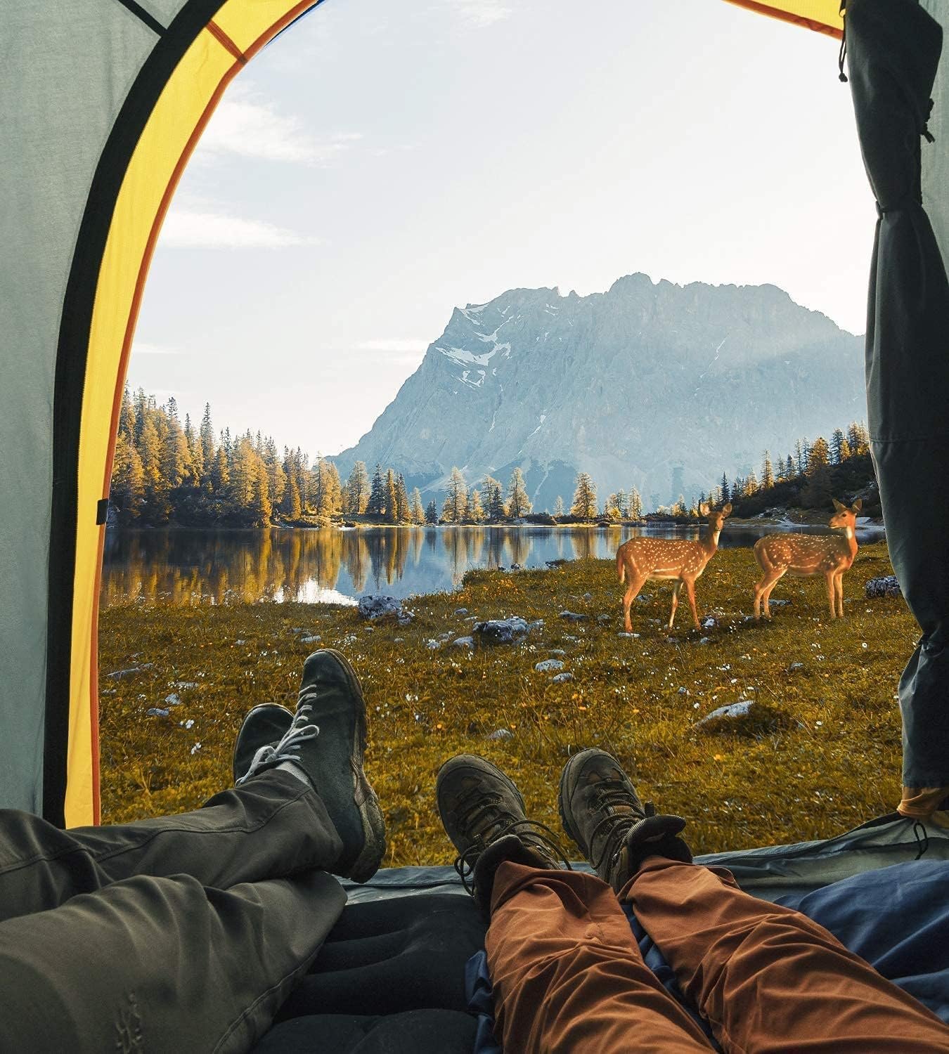 Spacious Space: Tent size: 90.5 x 62.9 x 66.9 inch, perfect for 2 person. The tent has 3 well-ventilated windows, 2 for sightseeing and 1 for hunting or observation, when you sleep at night, you can pull the shading layer and put it down in the daytime after leaving the mesh layer effectively preventing the sundries from falling into the tent