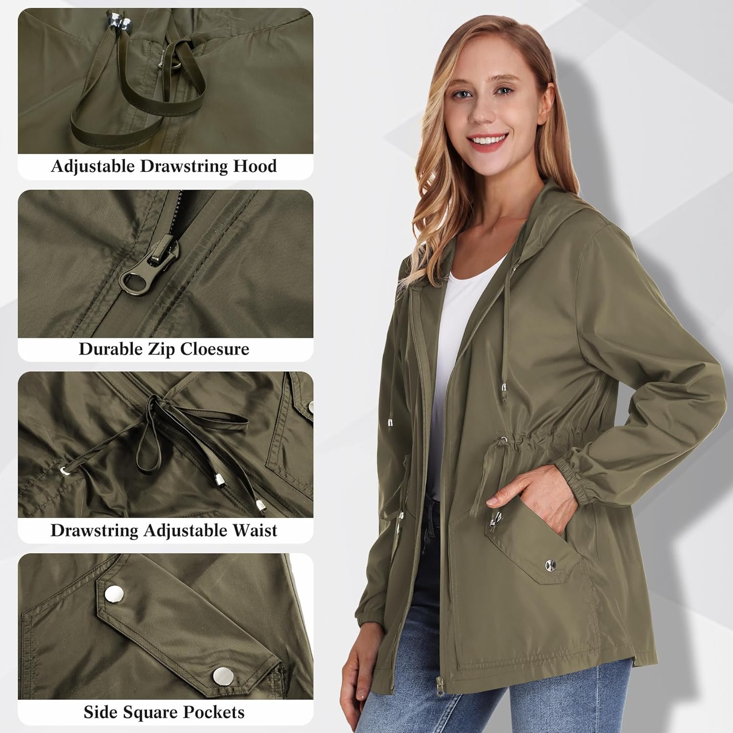 JTANIB Women Packable Rain Jacket Waterproof Lightweight Raincoat Hooded for Hiking Outdoor Travel
