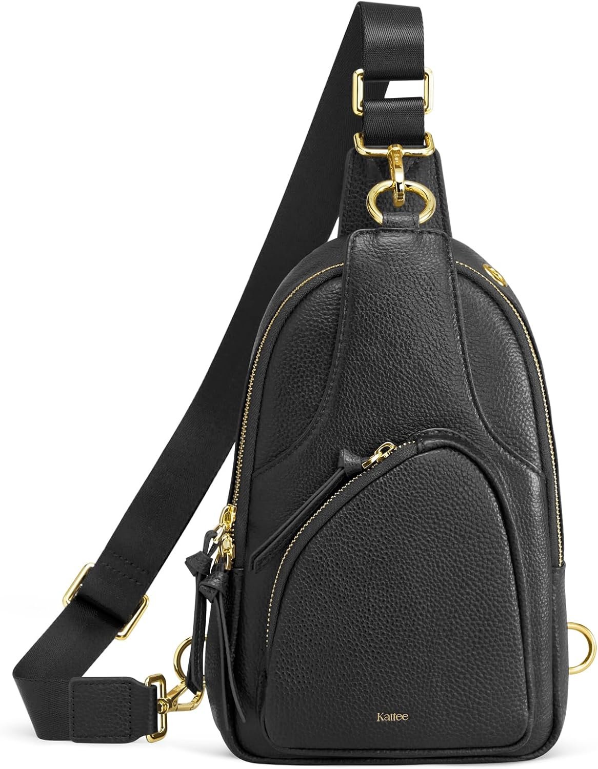 Kattee Sling Bag for Women, Leather Fanny Packs Crossbody Purse, Small Chest Bag with RFID Blocking, Black