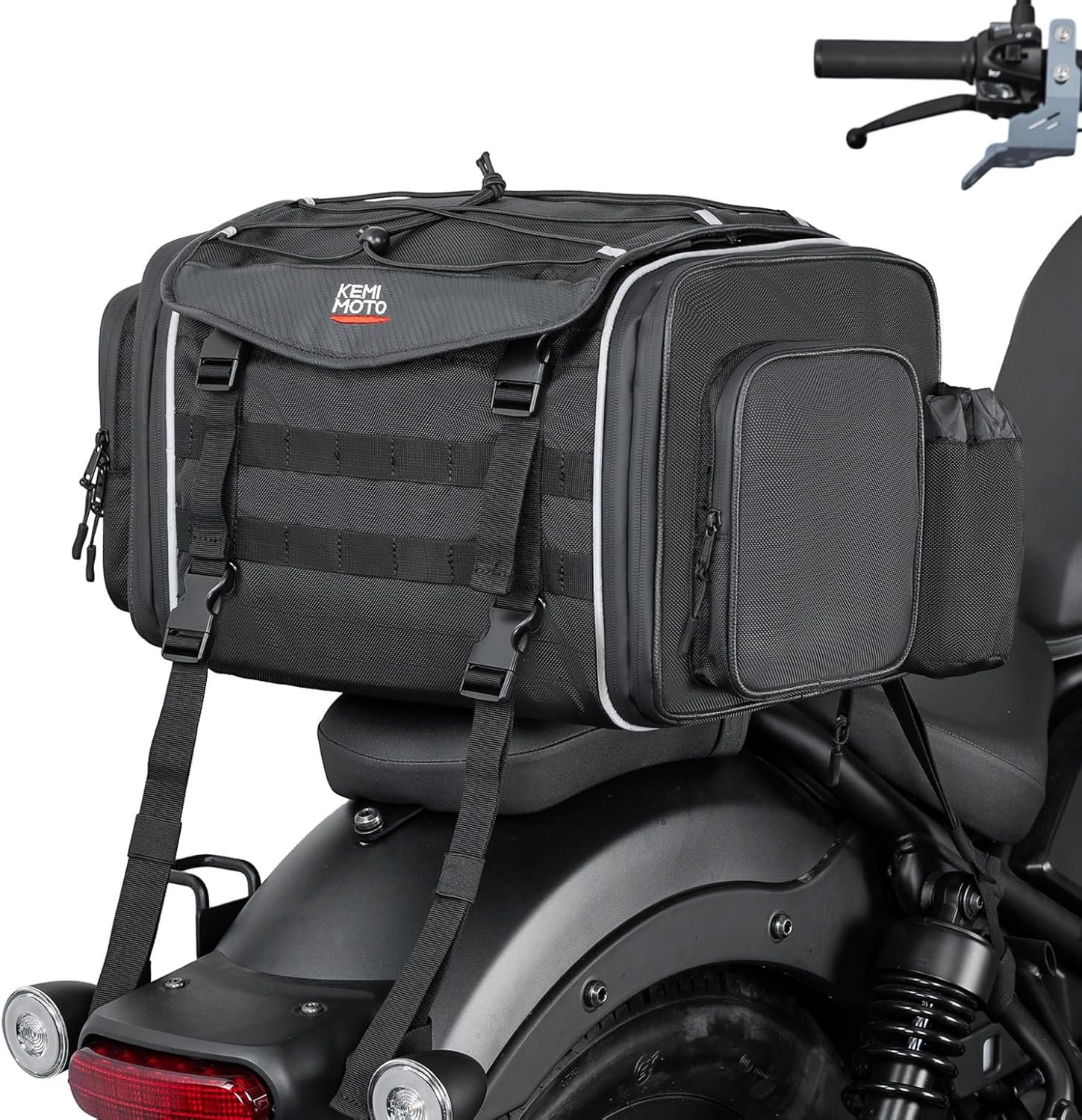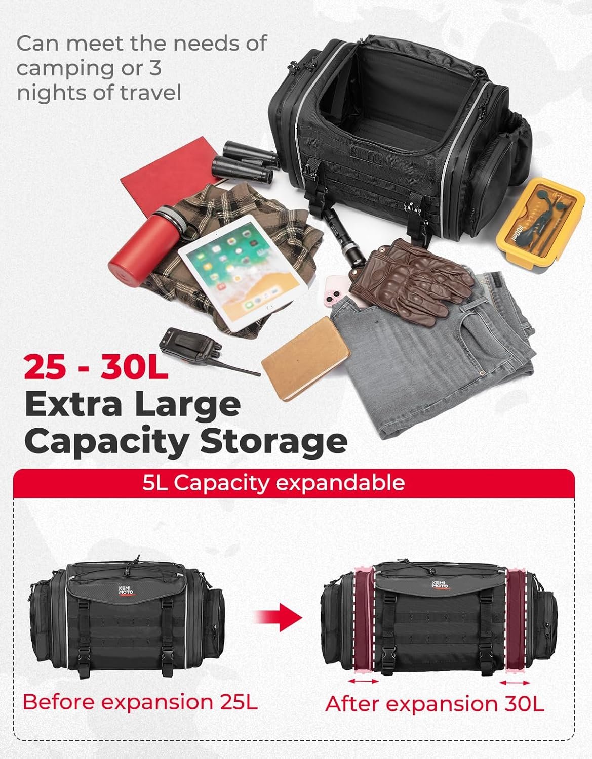 KEMIMOTO Motorcycle Travel Luggage Bags, 23L-30L Expandable Large Capacity Motorcycle Tail Bag, Waterproof Rear Rack Trunk, Motor Pannier Bag with Rain Cover and Straps
