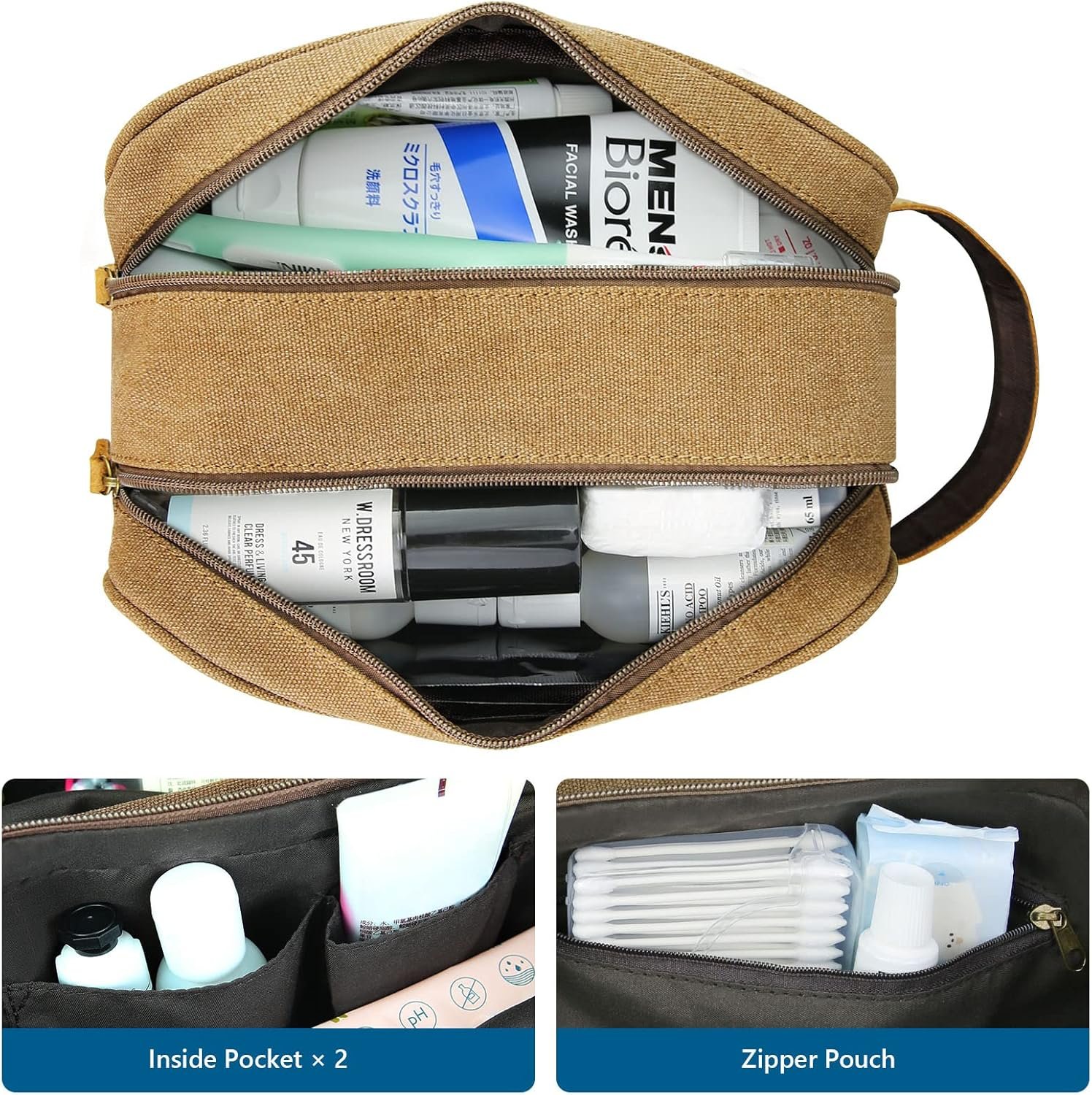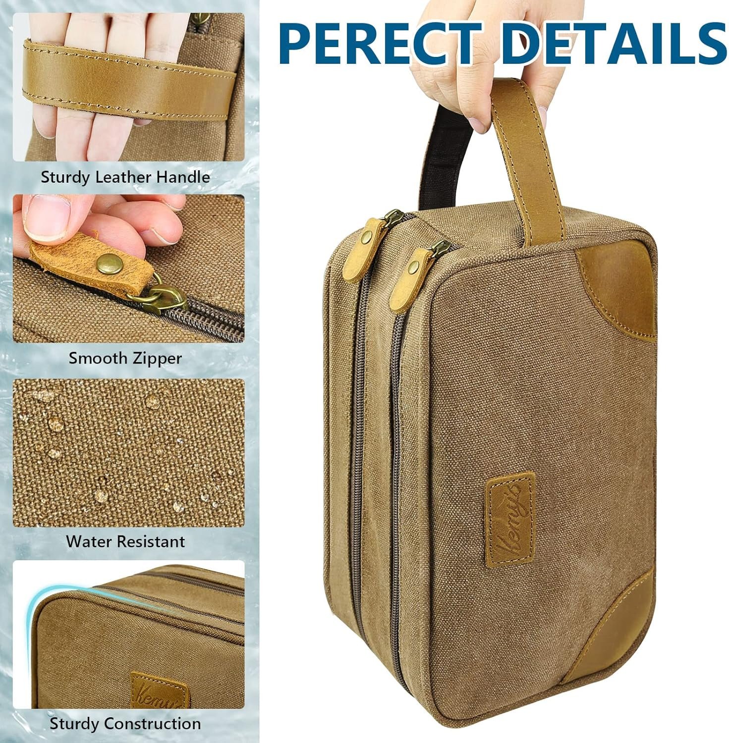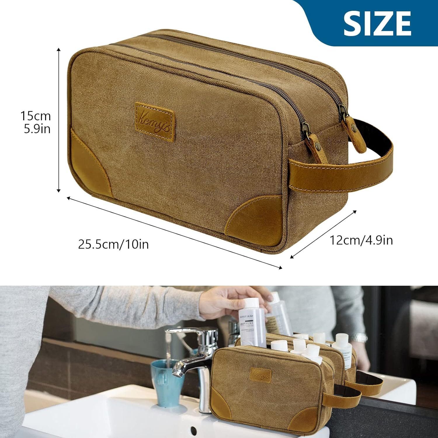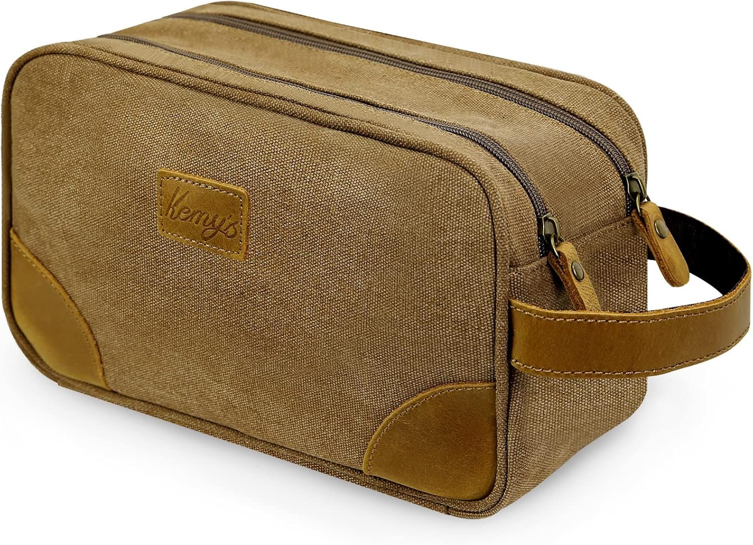 Kemy’s Toiletry Bag for Men, Travel Toiletries Organizer Bags with Water Resistant Canvas Leather Dopp Kit Shaving Bag for Toiletries Accessories