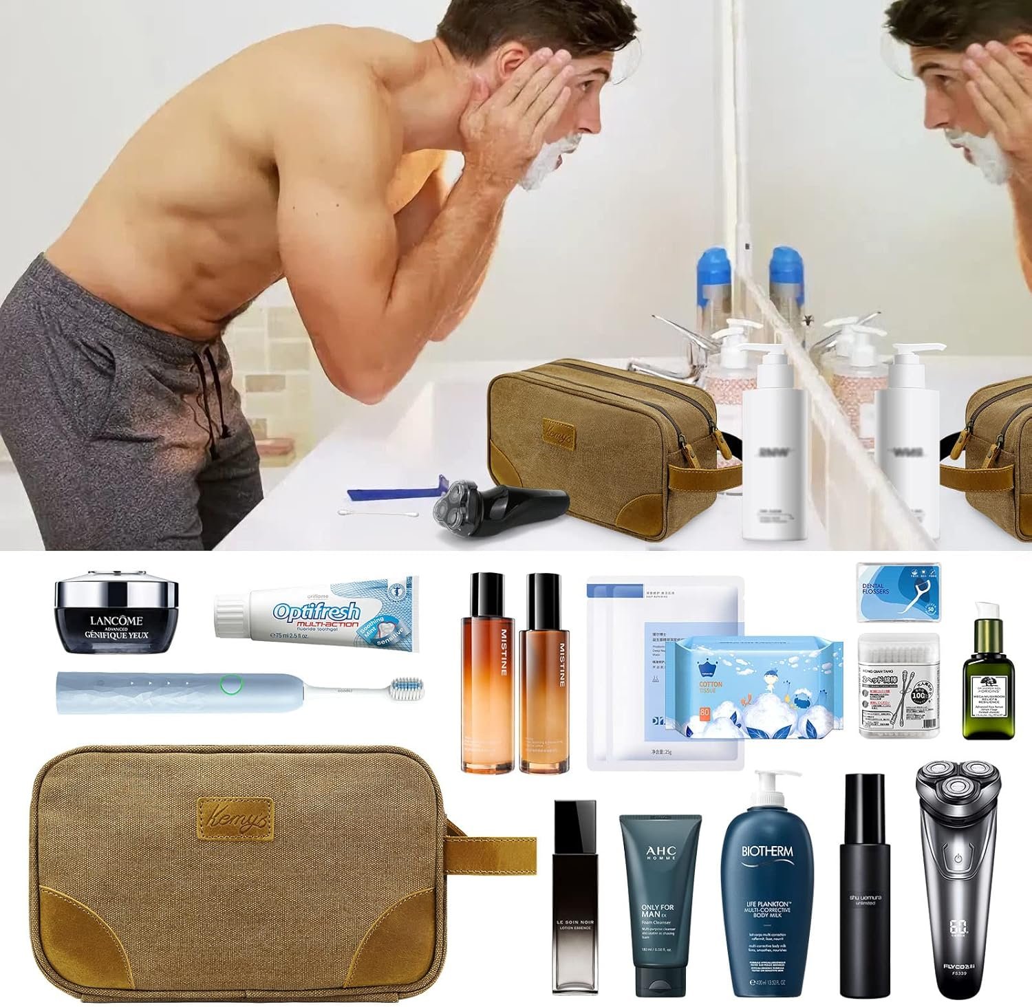 【Premium Toiletry Bag】The toiletry bag for man is made of premium genuine leather and waxed canvas with reinforced seams to keep its shape and protect your toiletries from splashes. Classic retro and multi-color style, provide you with a variety of options for organizing your toiletries!