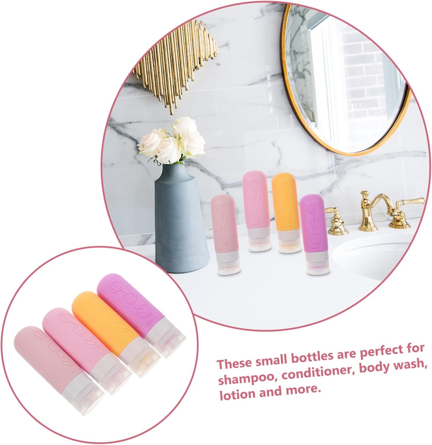 Travel Containers These travel bottles with small sizes, and are portable for travel carrying and storing.Travel Containers For Toiletries Creative liquid dispensing bottle for lotion or others storage.squeeze bottle for shampoo For home, office or public use.lotion squeeze bottle Fine craft and delicate design make it suitable for liquid storage and decoration