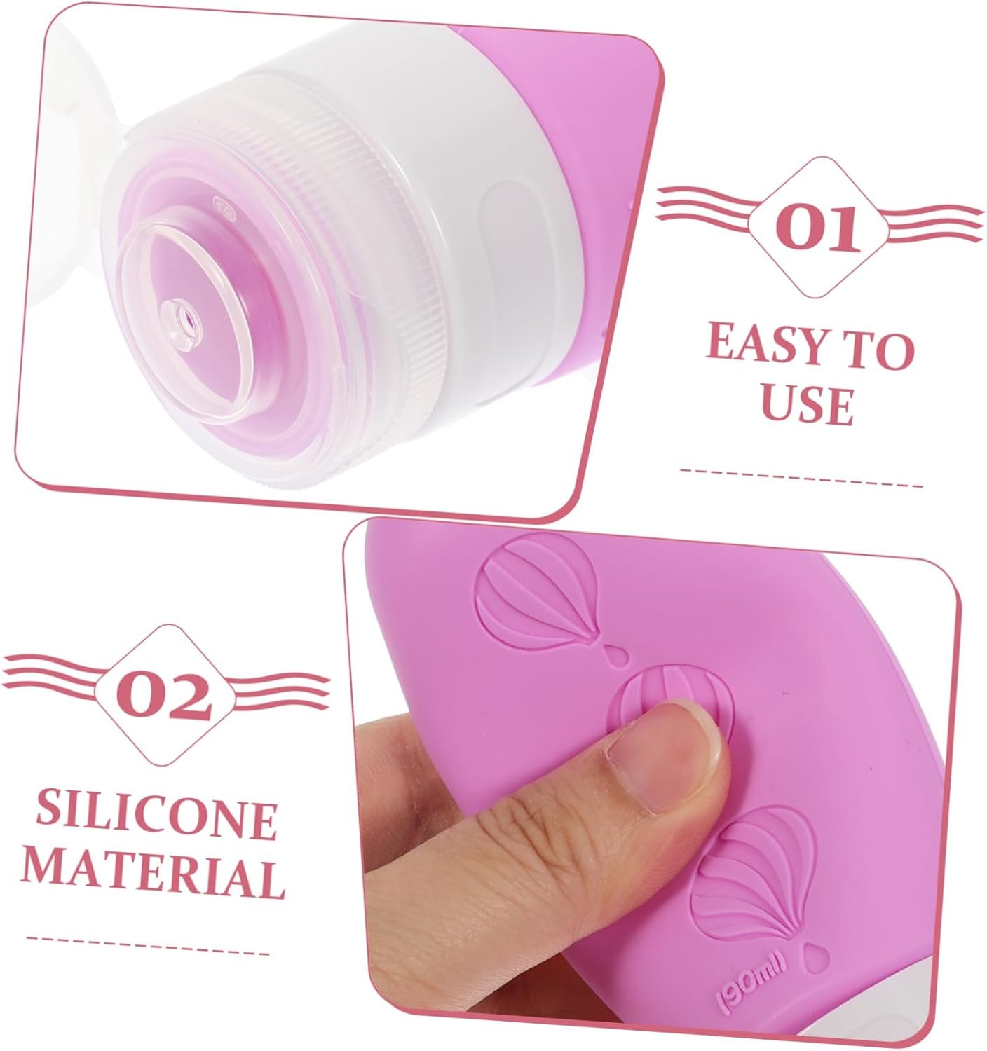 – The bottle is easy to squeeze as it is made of silicone, and easy to refill due to the large opening lotion dispenser bottle.