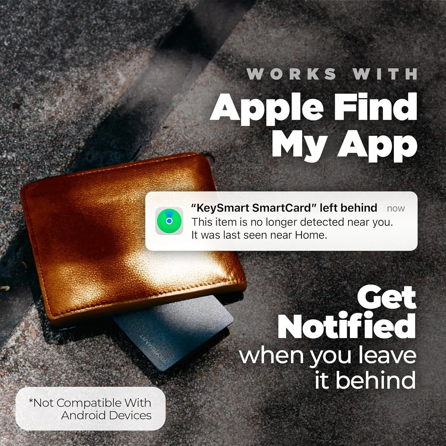 Get Notified When You Leave It Behind and Lost Mode Helps you Get it Back. The Apple Find My app proactively prevents you from losing your wallet or ID card by sending notifications to your iPhone, CarPlay, or AirPods if you leave your KeySmart Card behind. With Apple’s advanced encryption system you have built in privacy that ensures your KeySmart Card won’t be tracked by other people.
